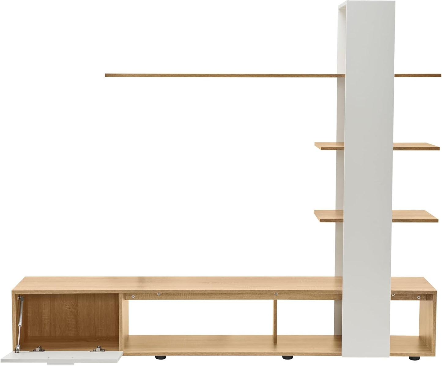 Merax Living Room Furniture Set, 1 x TV Lowboard, Three-Layer Wall Shelf, Living Room Furniture Complete, Elegant Cabinet Wall, Media Wall, Lots of Storage Space, for 60 Inch TVs, White & Wood Colour