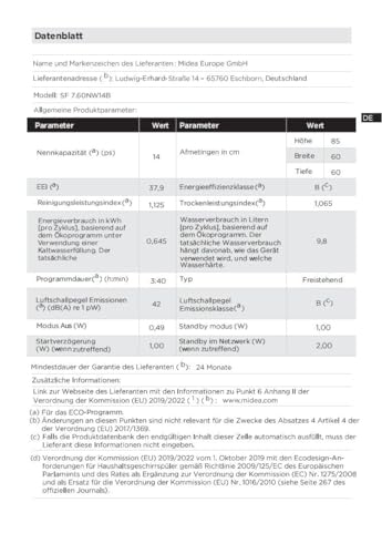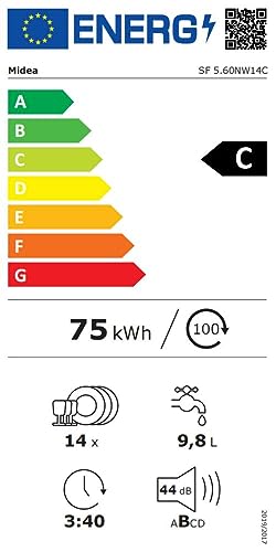 Midea SF 5.60NW14C Dishwasher 60 cm Freestanding & Undermountable, 14 MGD, Hygiene Care +, Zone Wash, 7 Programmes, Dishwasher 60 cm with WiFi, Start Delay, Automatic Door Opening, 44 dB