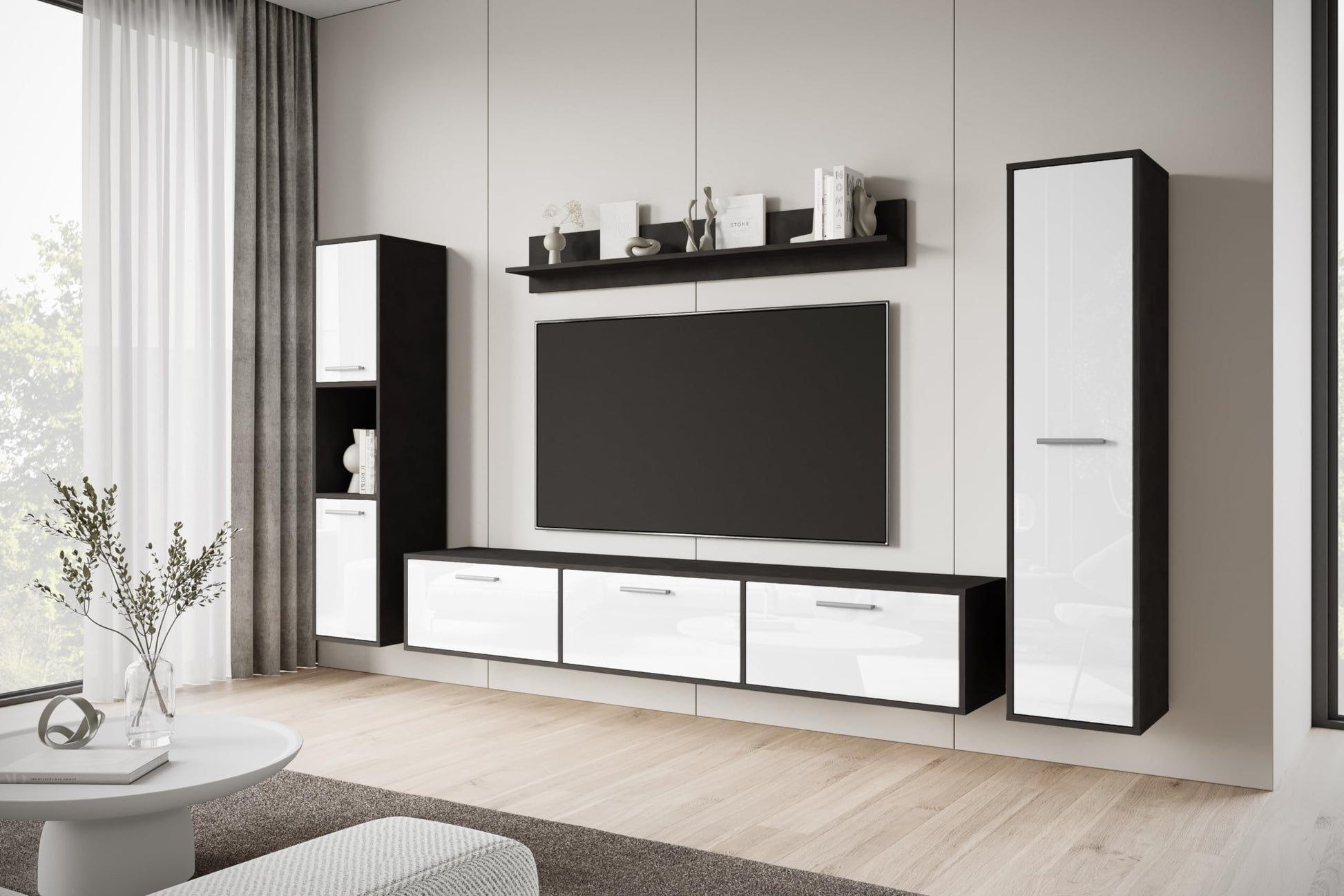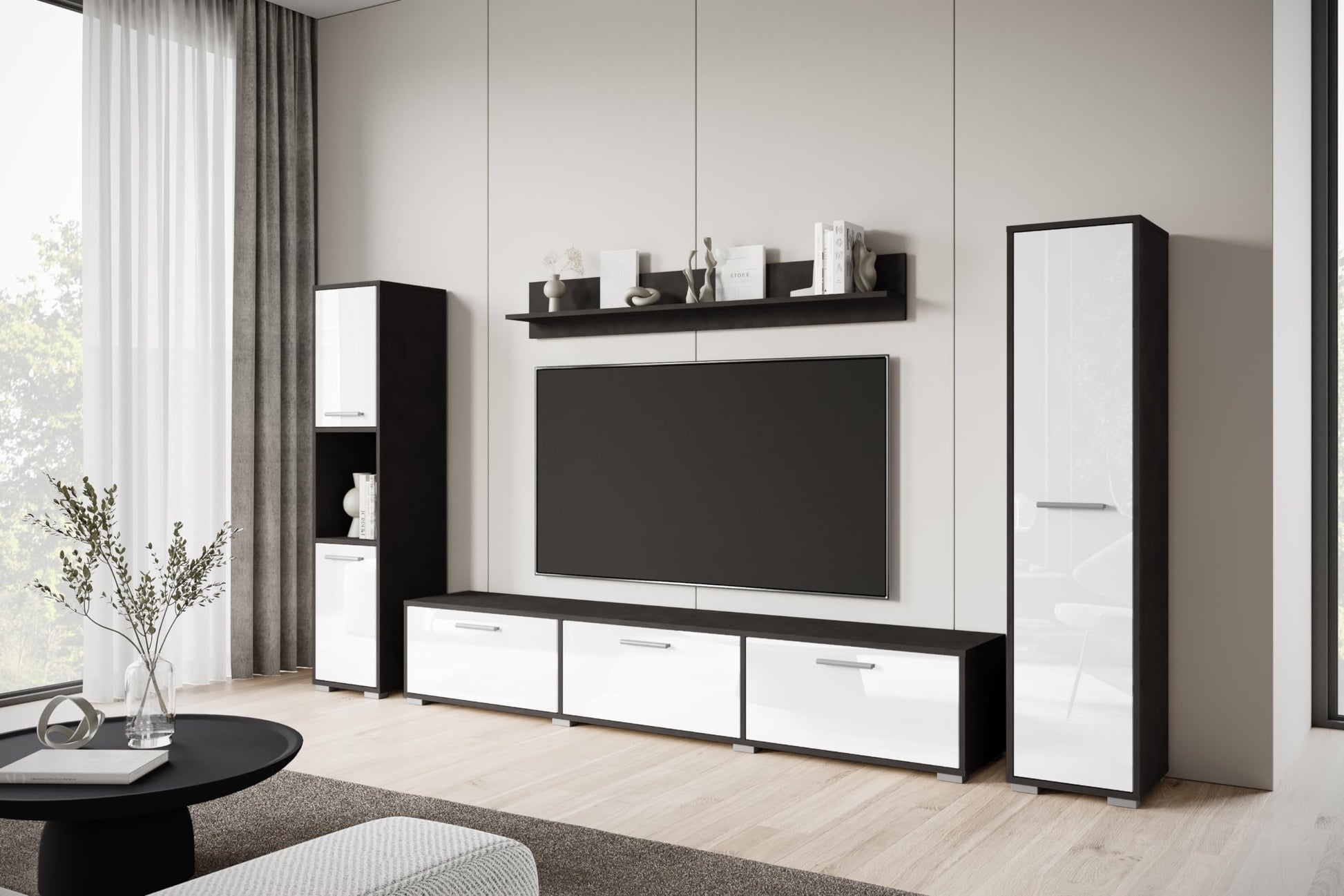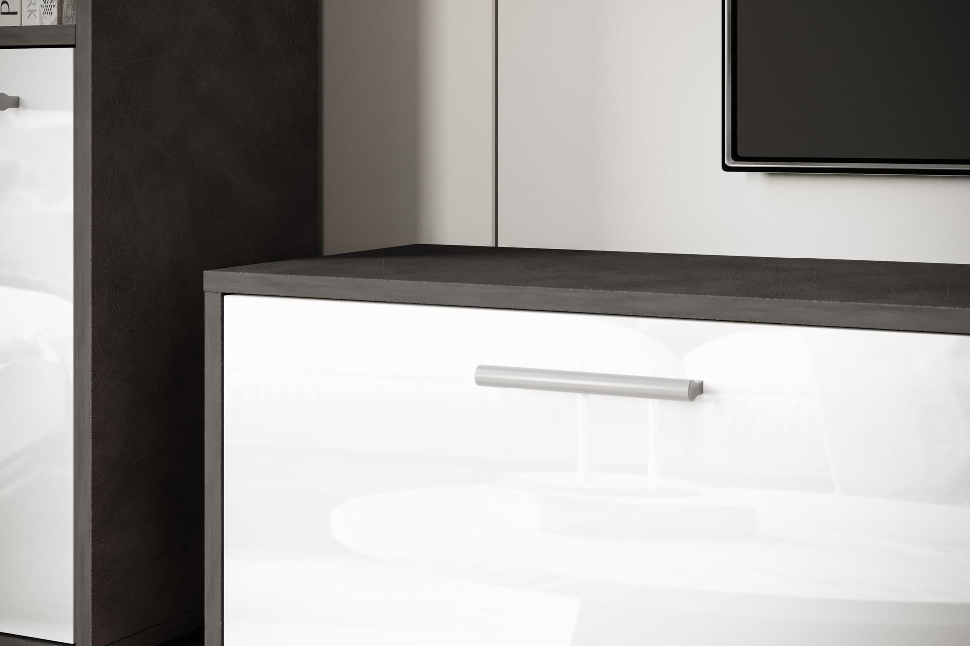 - A timeless piece of furniture that will impress today, tomorrow, in a year and in a decade. The modern colour combination of Wotan oak and white high gloss brings elegance to your living room.