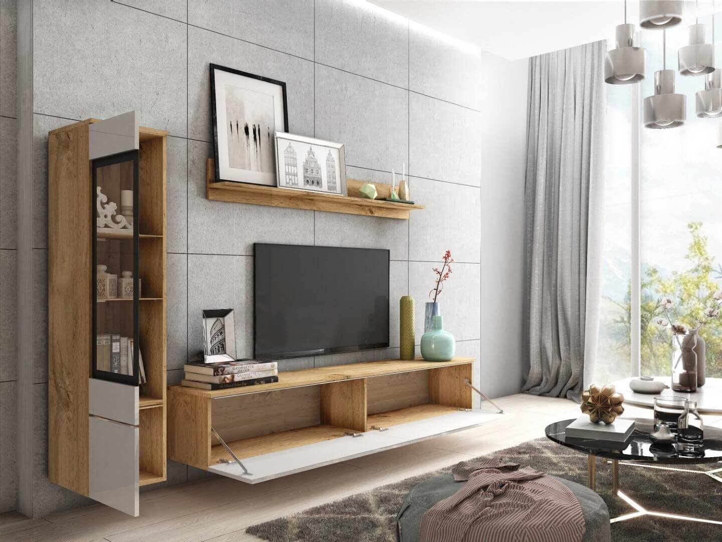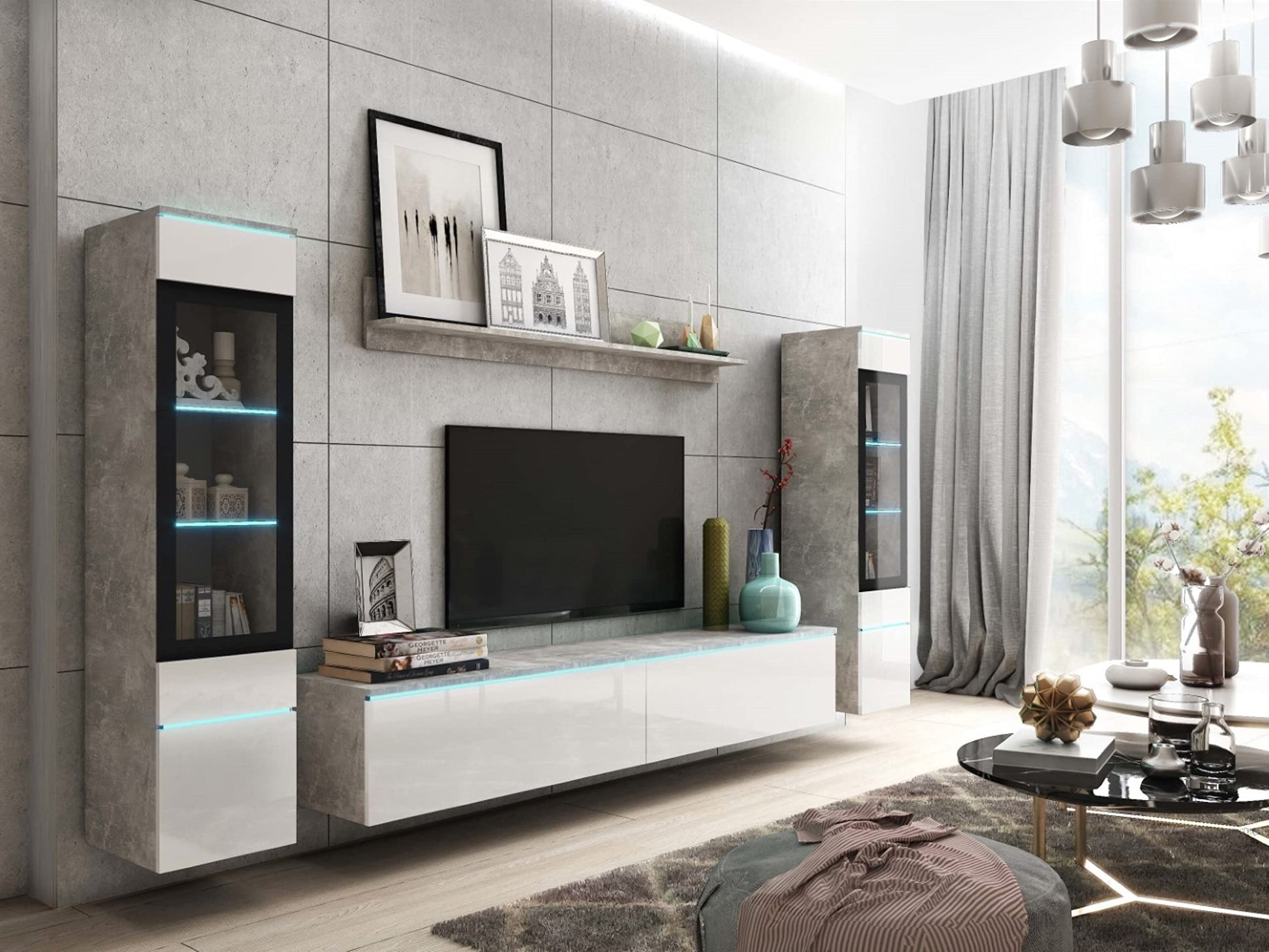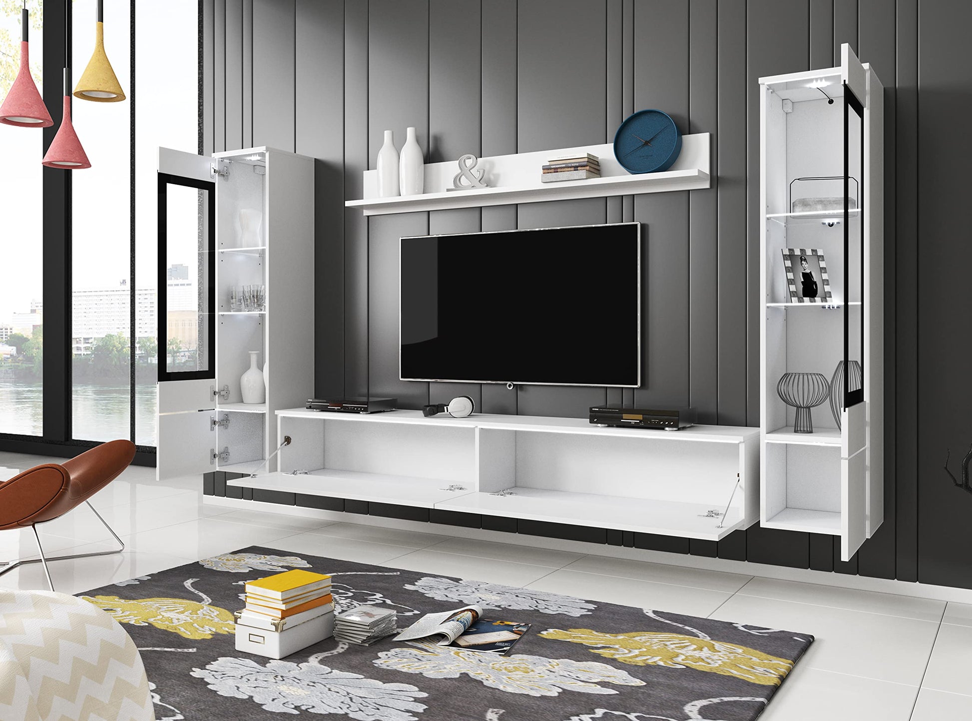 - The wall unit can be set up or hung up in any configuration. Set your creativity no limits and decide the arrangement of the furniture for yourself. Use the space on the walls by hanging furniture.