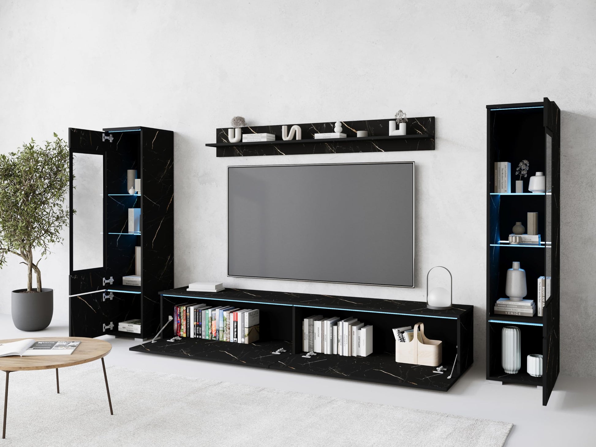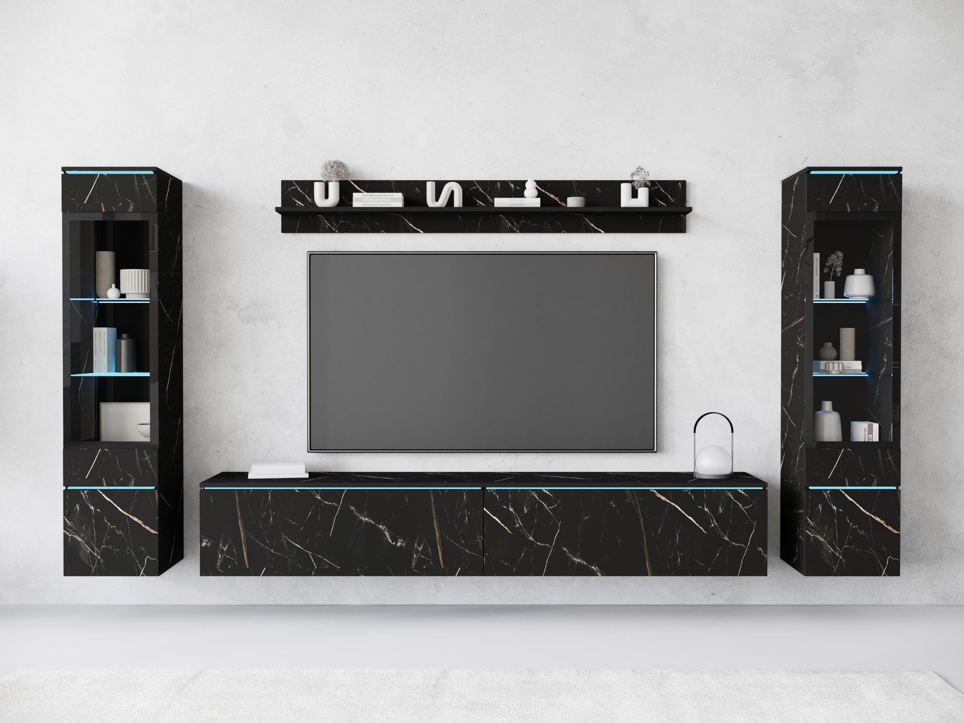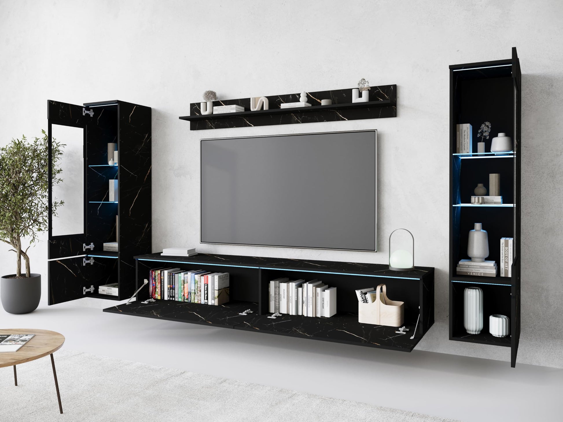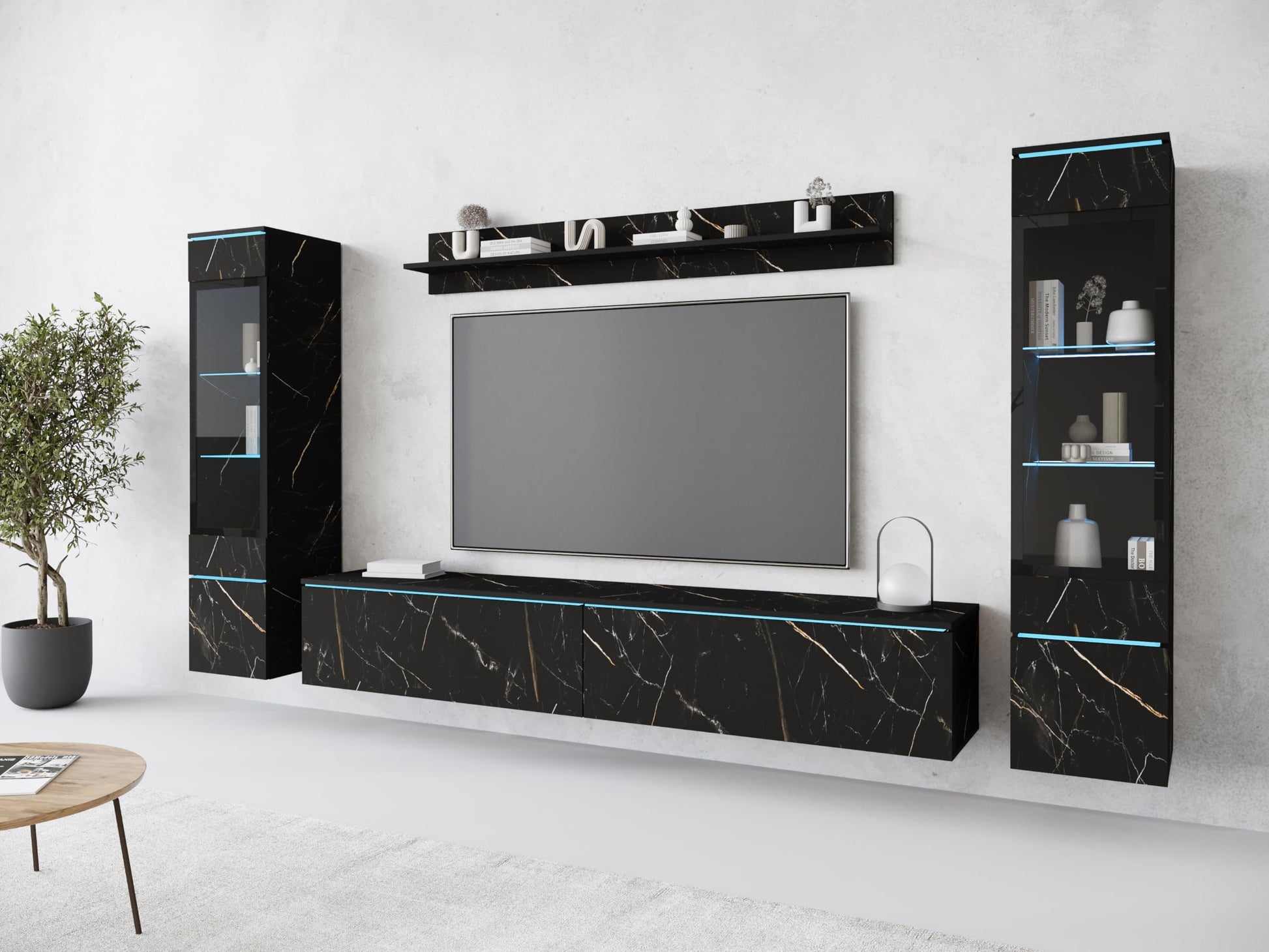 - The wall unit can be set up or hung up in any configuration. Set your creativity no limits and decide the arrangement of the furniture for yourself. Use the space on the walls by hanging furniture.