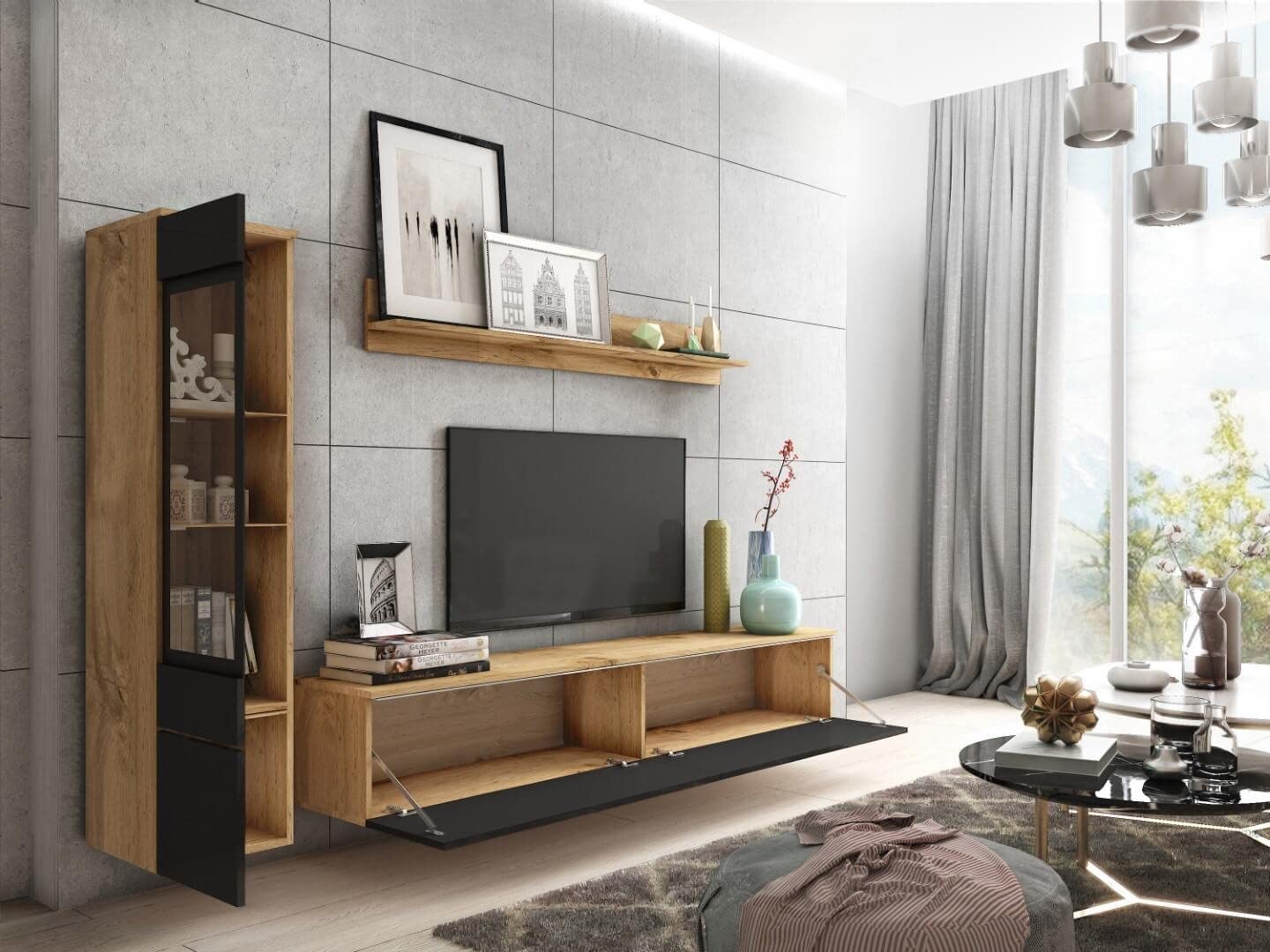 - Thanks to the multifunctionality of the furniture and the open and closed storage spaces, you can display your treasures or hide them from prying eyes. The stain-resistant chipboard is ideal for parents with children or pet owners.