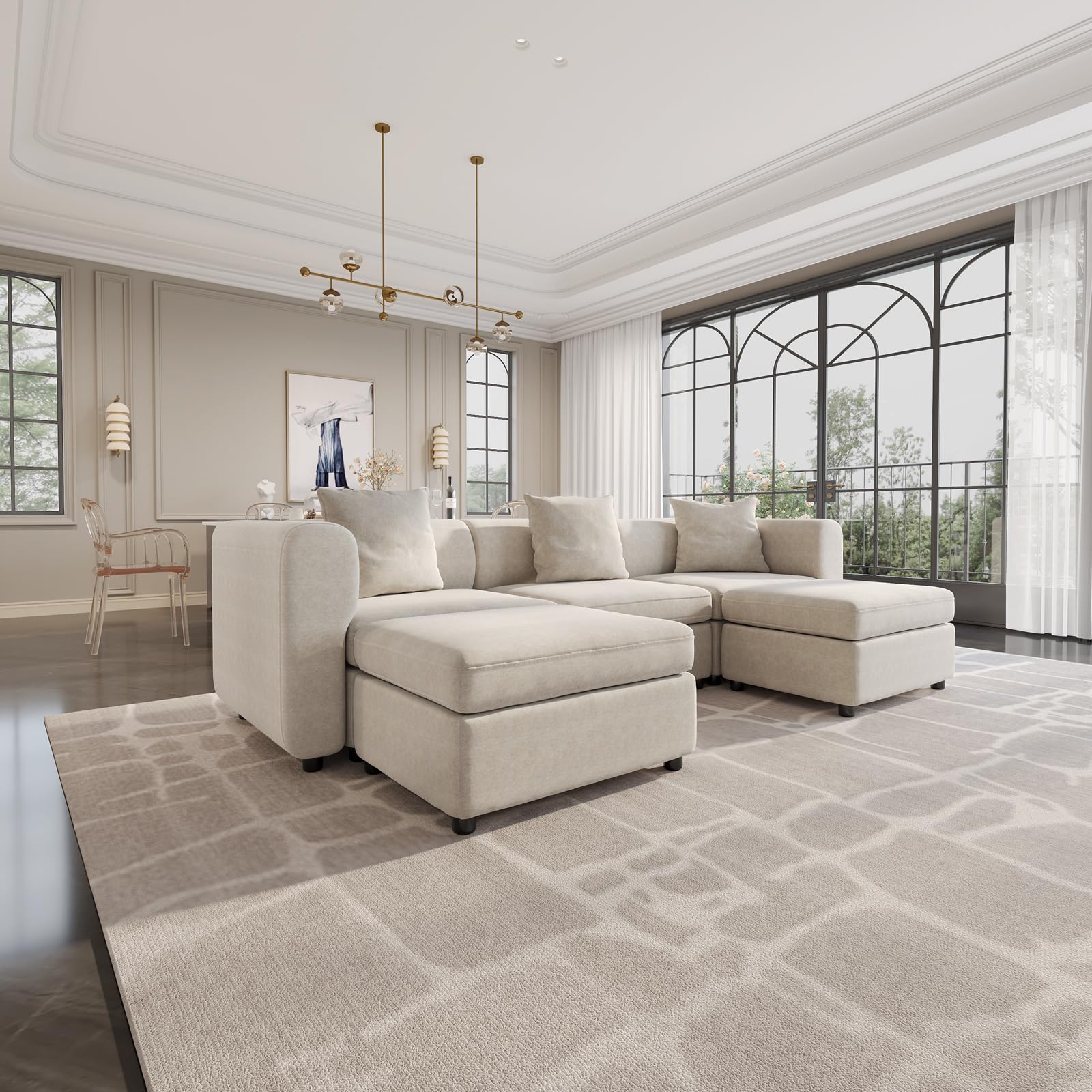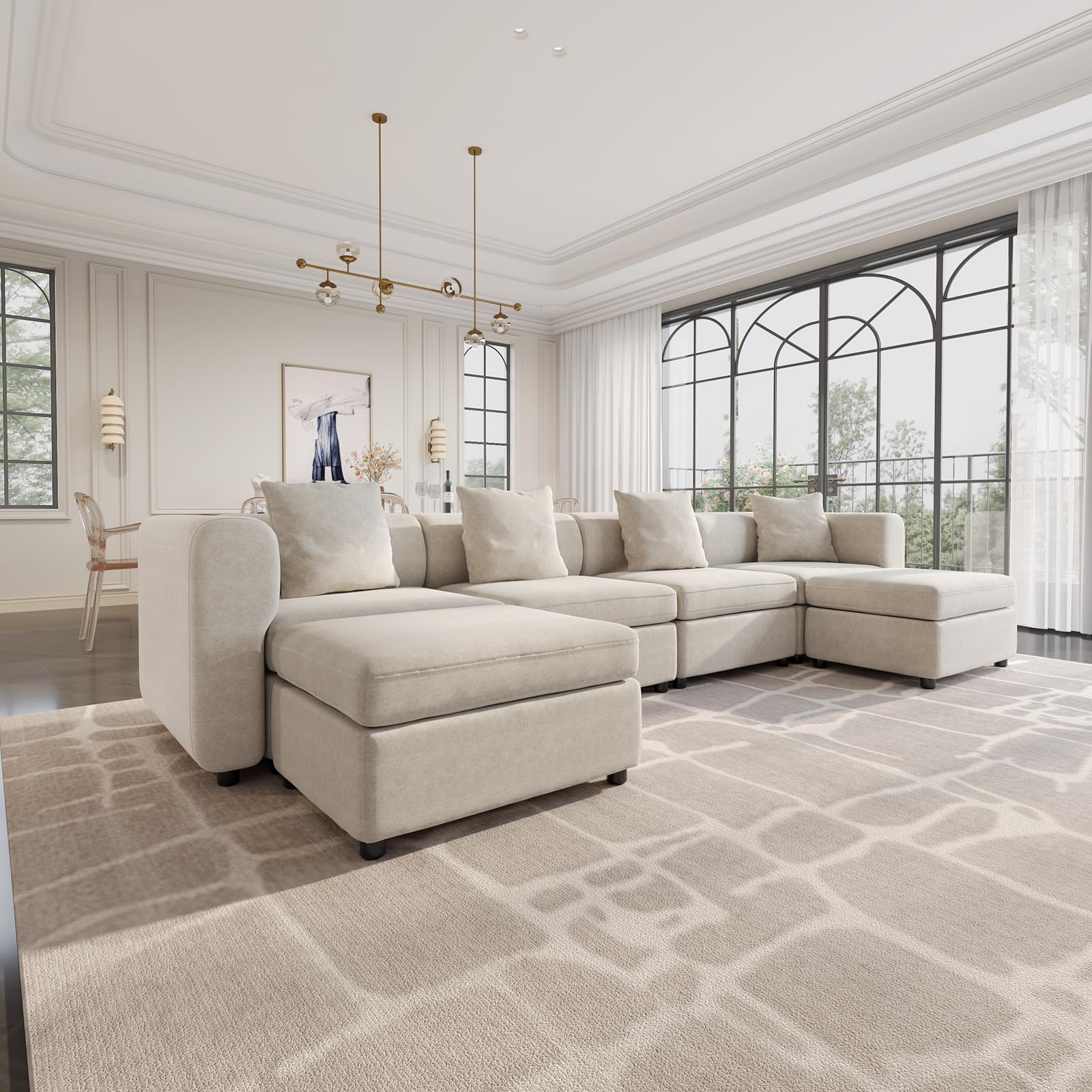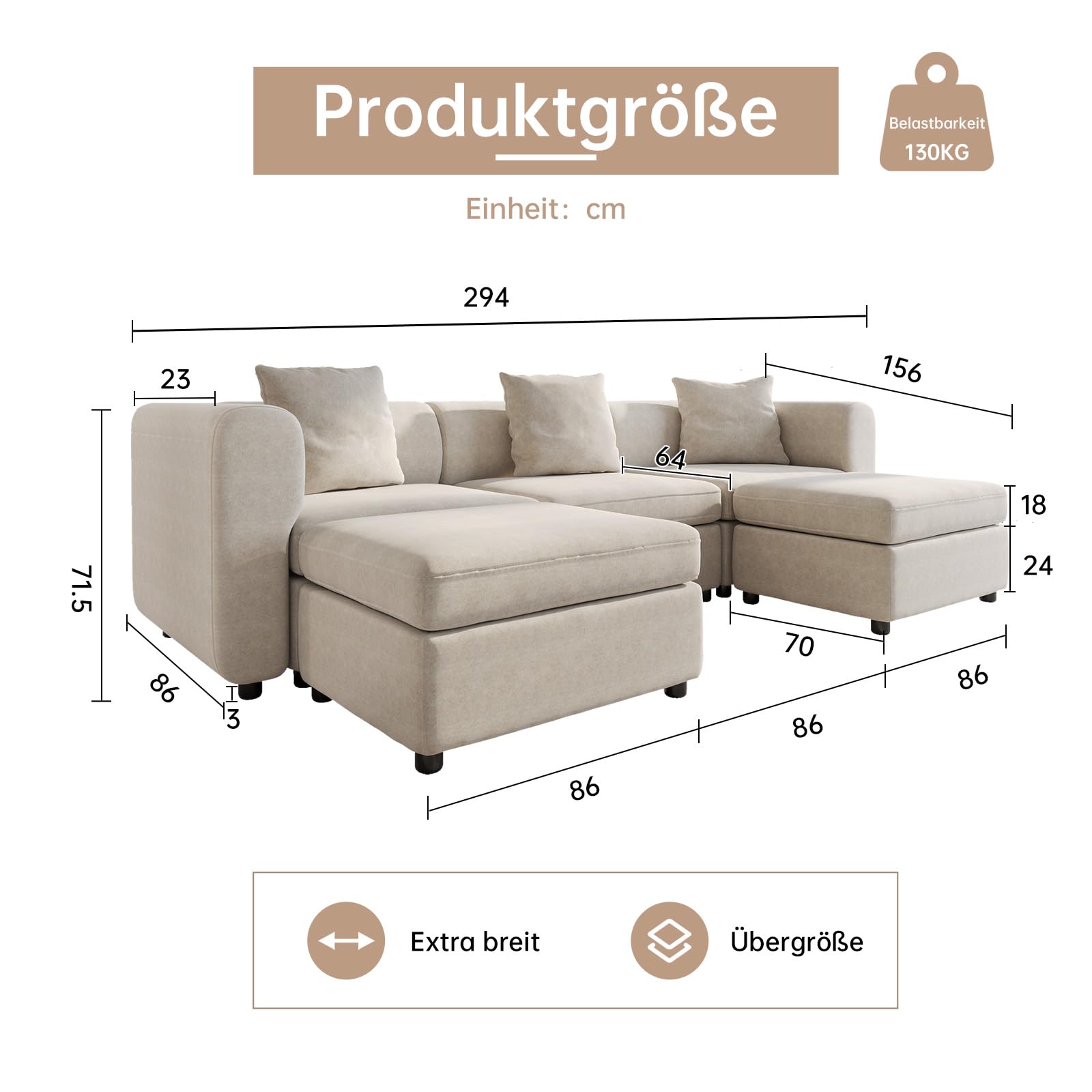 - Queen Size Sofa: Oversized Sofa:5 Sitze mit 4 Ottomanen. Wir verstehen die Bedeutung von Komfort und Anpassung an verschiedene Körpertypen. Aus diesem Grund ist das Miuuod Queen Sofa mit zusätzlicher Länge und Breite entworfen und bietet viel Platz, ohne sich überfüllt zu fühlen. Egal, ob Sie sitzen oder liegen, Sie werden ultimativen Komfort erleben. Das ergonomische Strukturdesign ermöglicht es Ihnen, sich vollständig zu entspannen und die beruhigende Atmosphäre Ihres Wohnzimmers zu genießen.