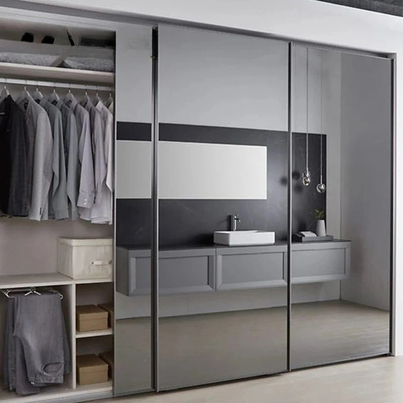 Modern Shaped Wardrobe with LED Light & Sliding Glass Door