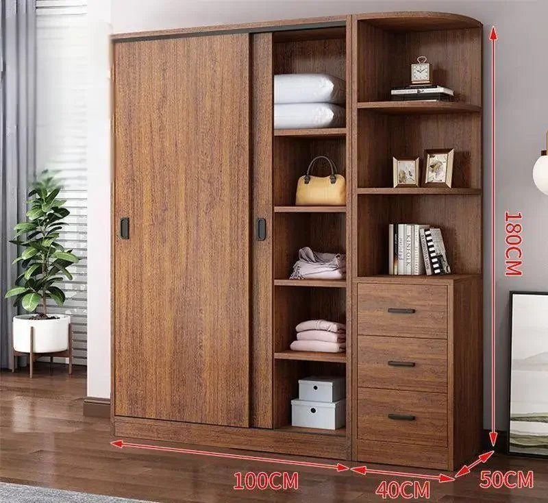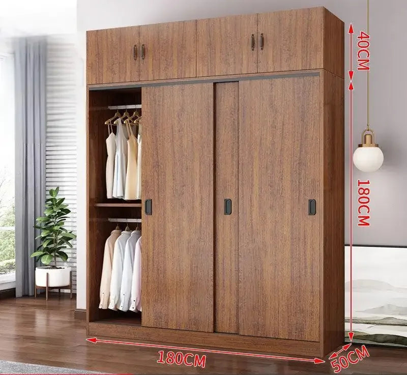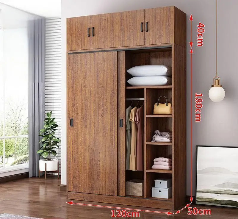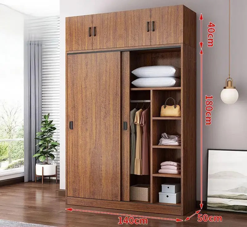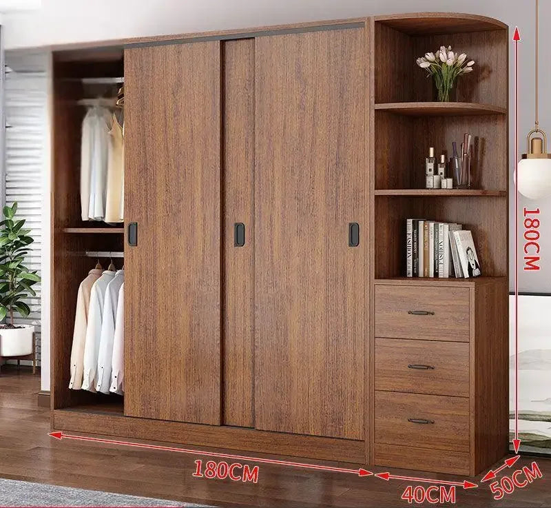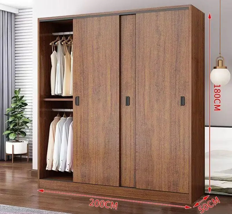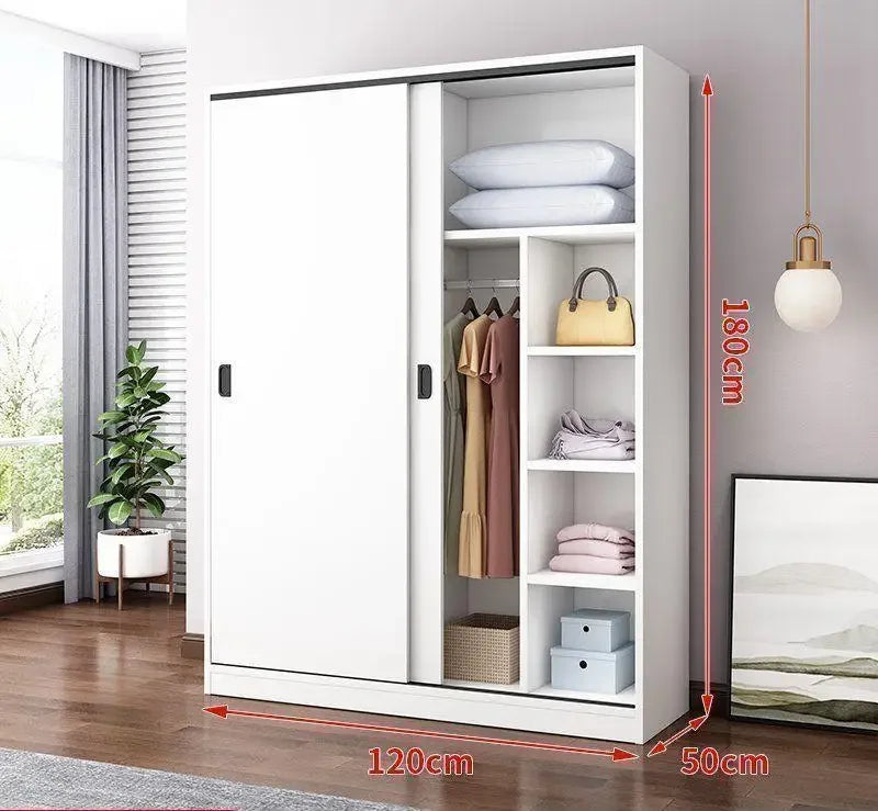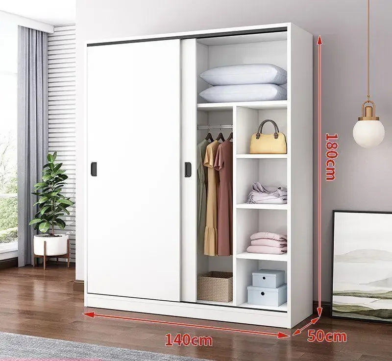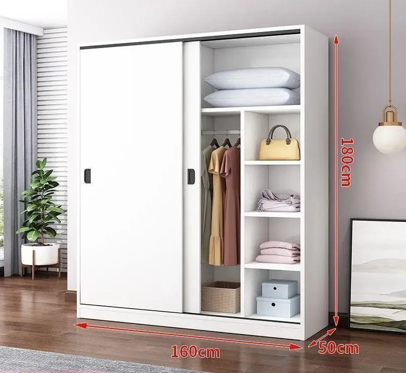 Modern Simple Nordic Rental Room Simple Assembly Solid Wood Sliding Door Large Wardrobe Bedroom