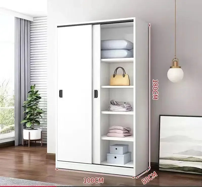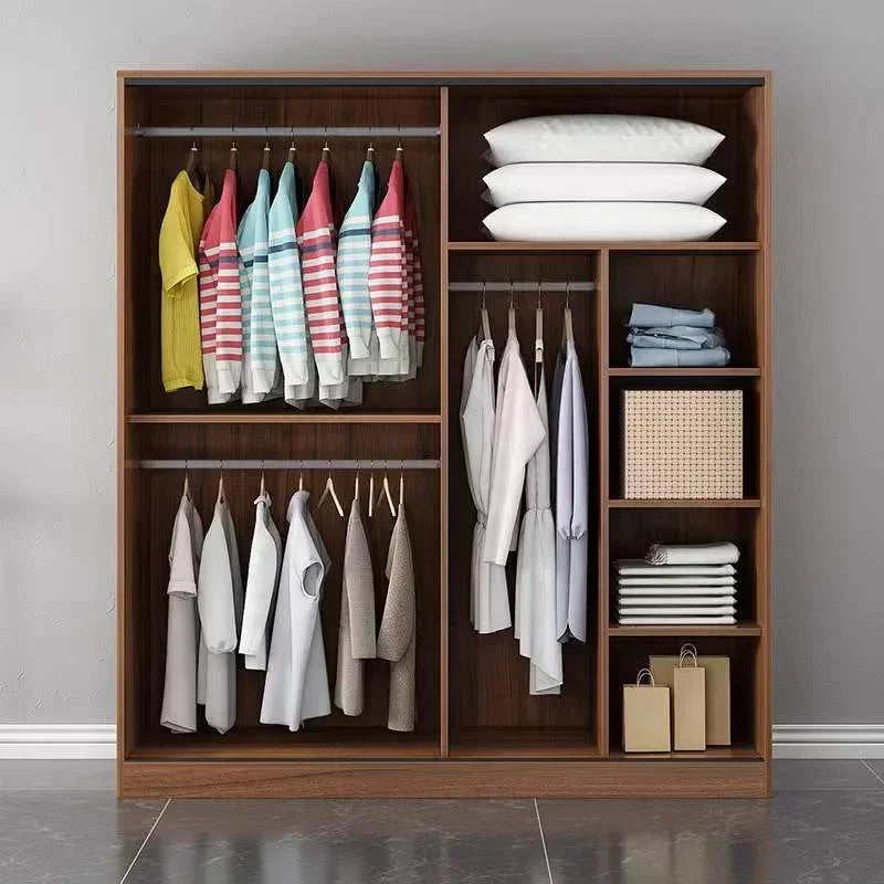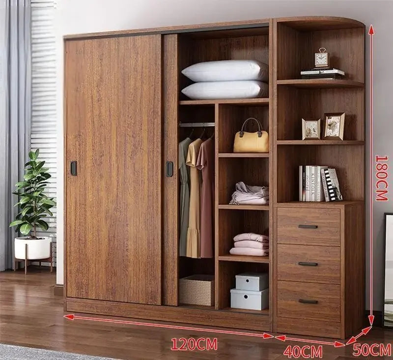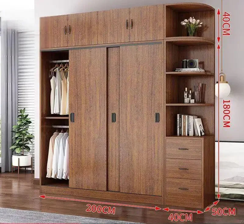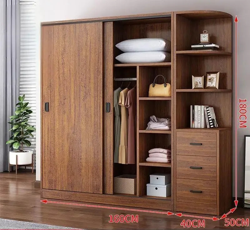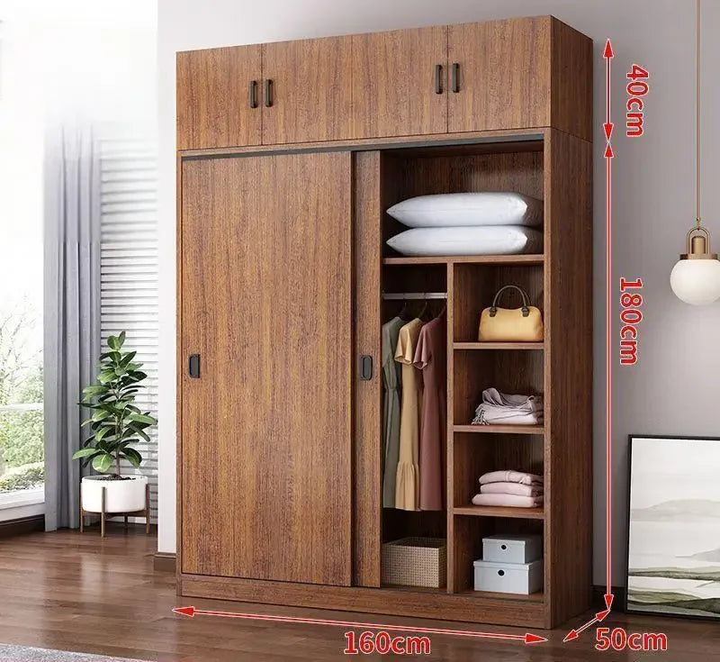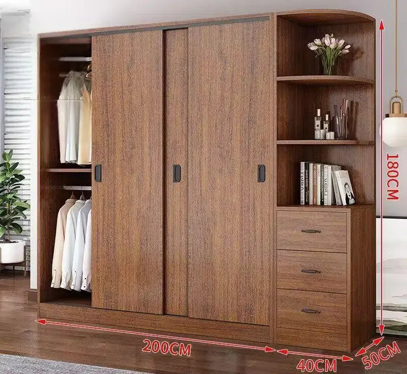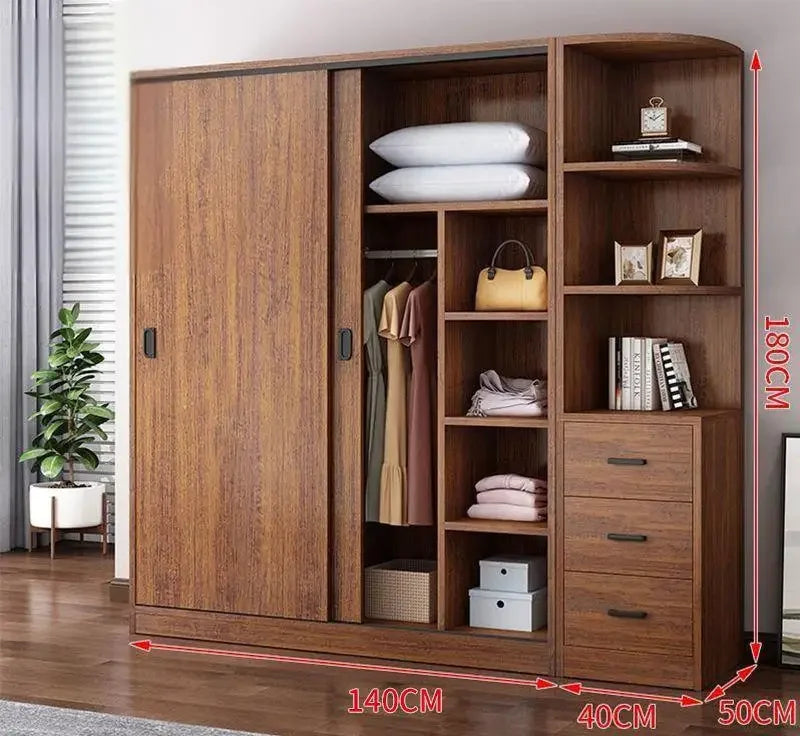 Modern Simple Nordic Rental Room Simple Assembly Solid Wood Sliding Door Large Wardrobe Bedroom