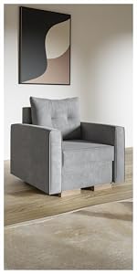 - Robust construction – generously padded and processed with high-quality fabrics, the sofa and chair set is made with 16 mm furniture chipboard, which are additionally reinforced with natural wood