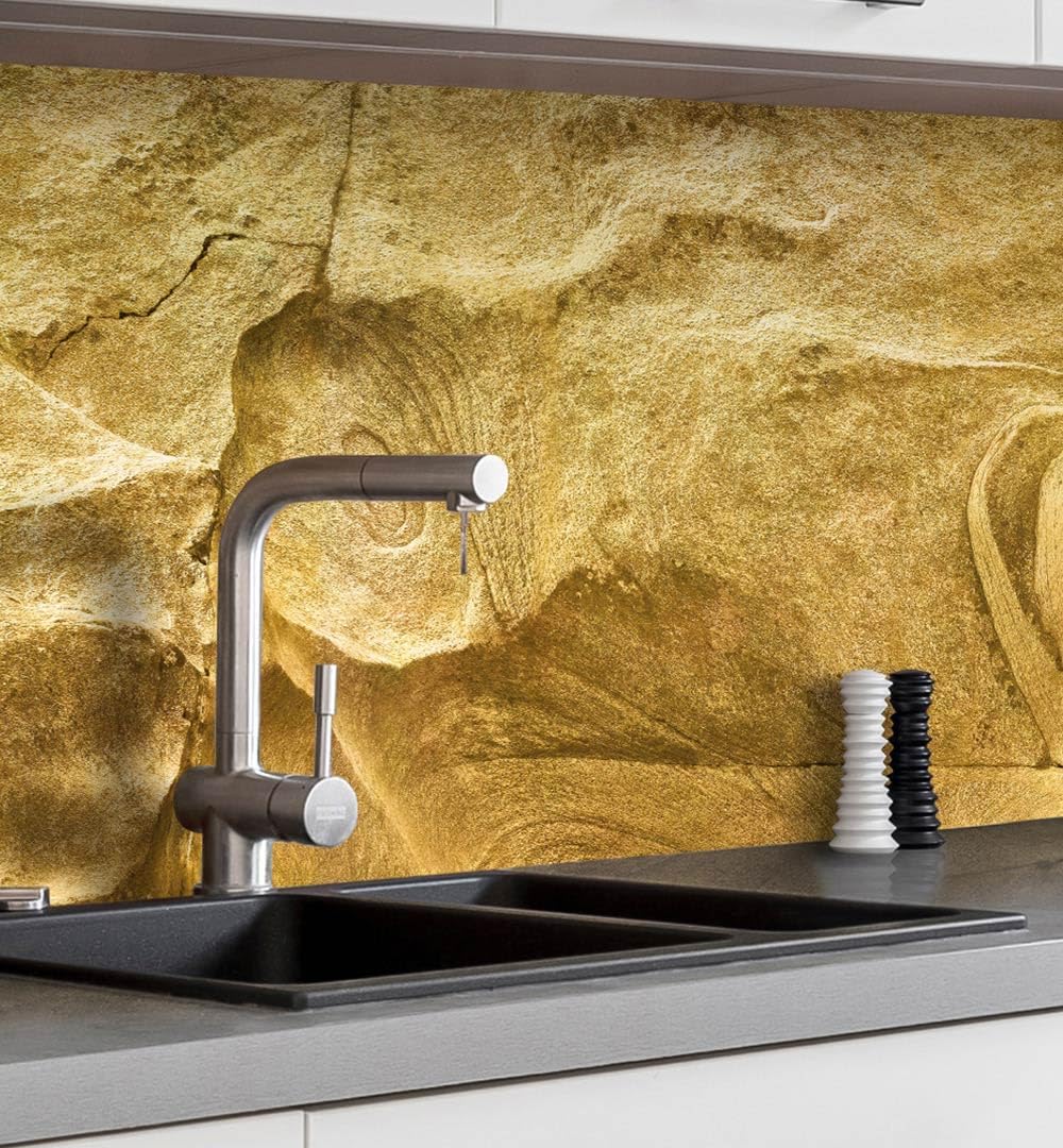 - SELBSTKLEBENDE KÜCHENFOLIE - LEICHT ZU REINIGEN: Wandschutzfolie aus 0,4 mm starker PET Folie für deine Küchenzeile - formstabil, langlebig, mit hochwertigem Digitaldruck bedruckt und kratzfest durch hochwertiges Schutzlaminat.