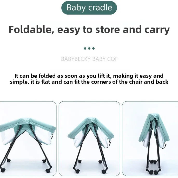 New baby rocking chair baby soothing recliner children's foldable four-wheel rocking bed
