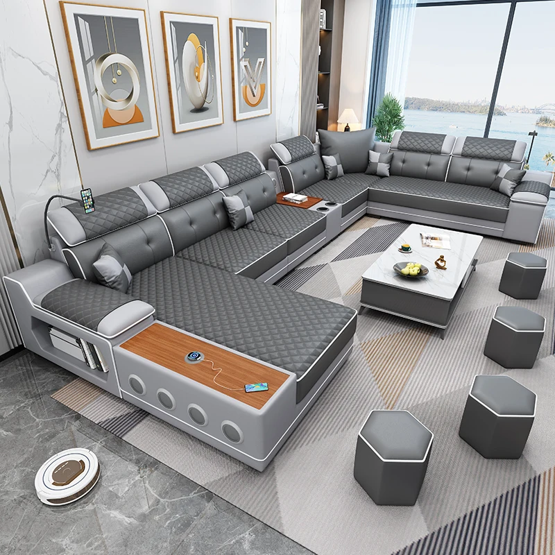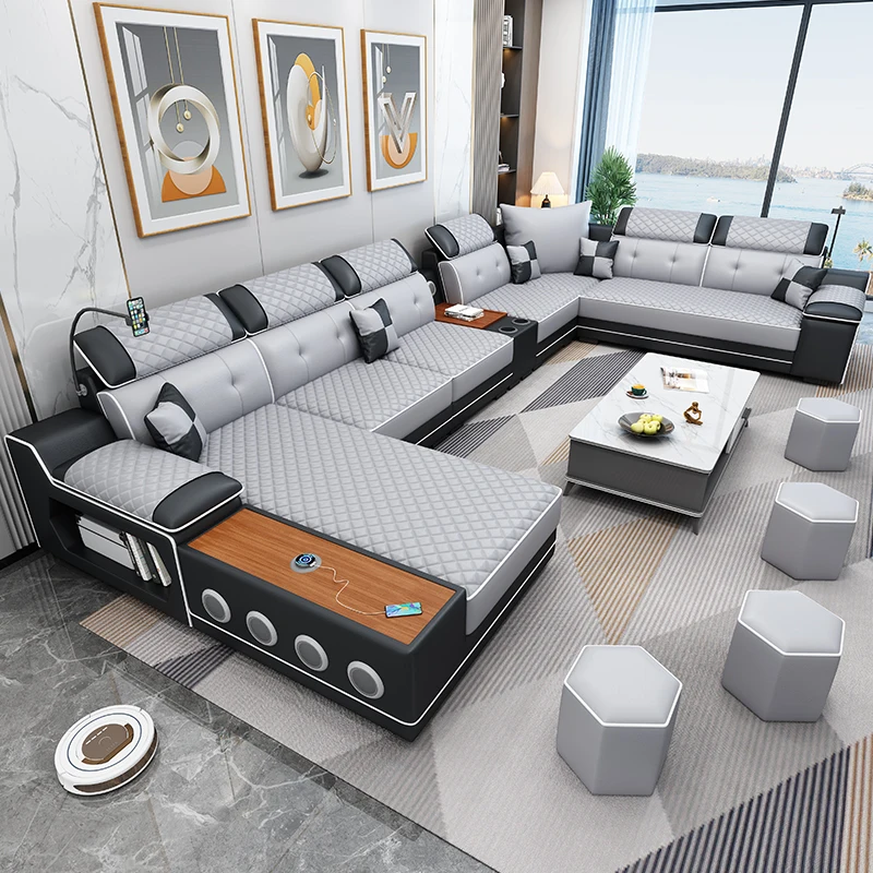 New multi-functional sofa simple modern living room large corner removable and washable technology cloth sofa combination