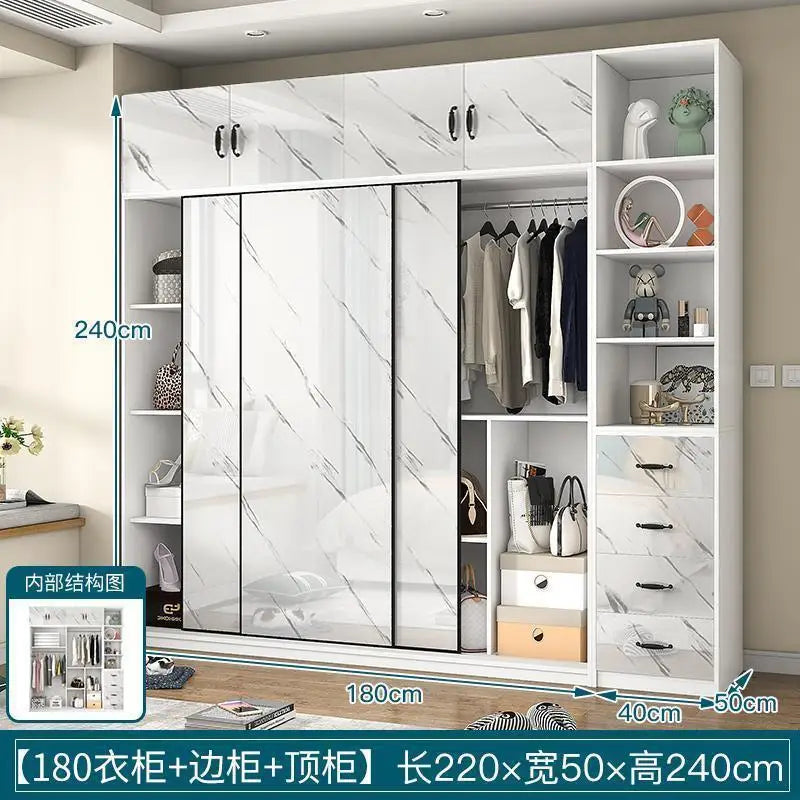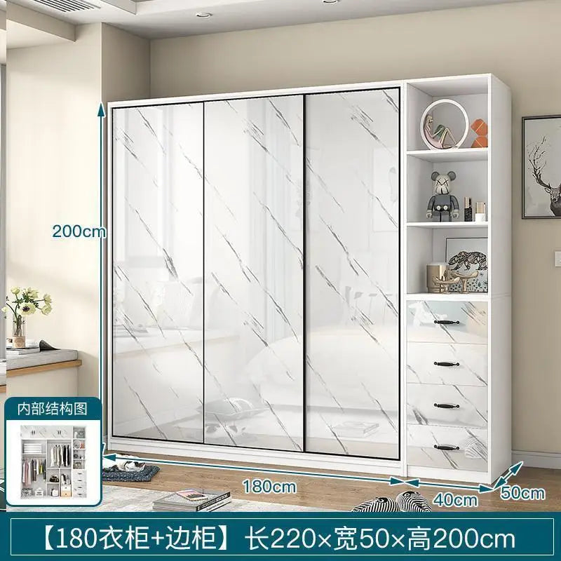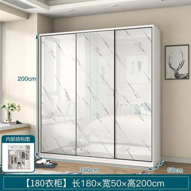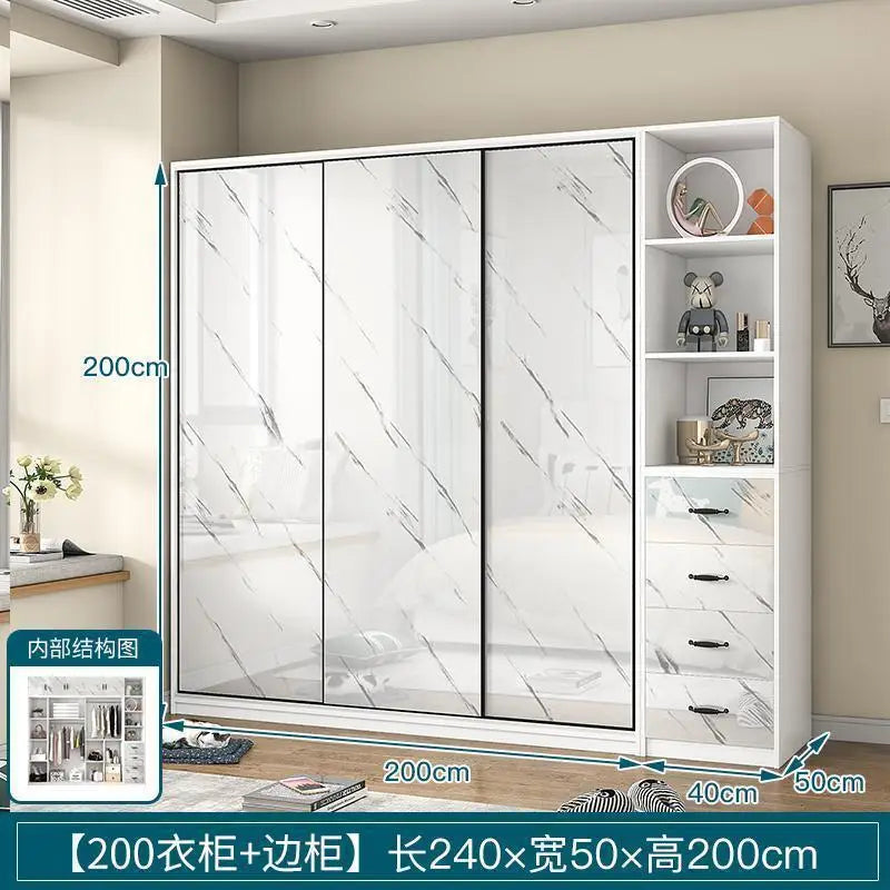 New sliding door wardrobe home bedroom rental wardrobe modern simple wooden storage