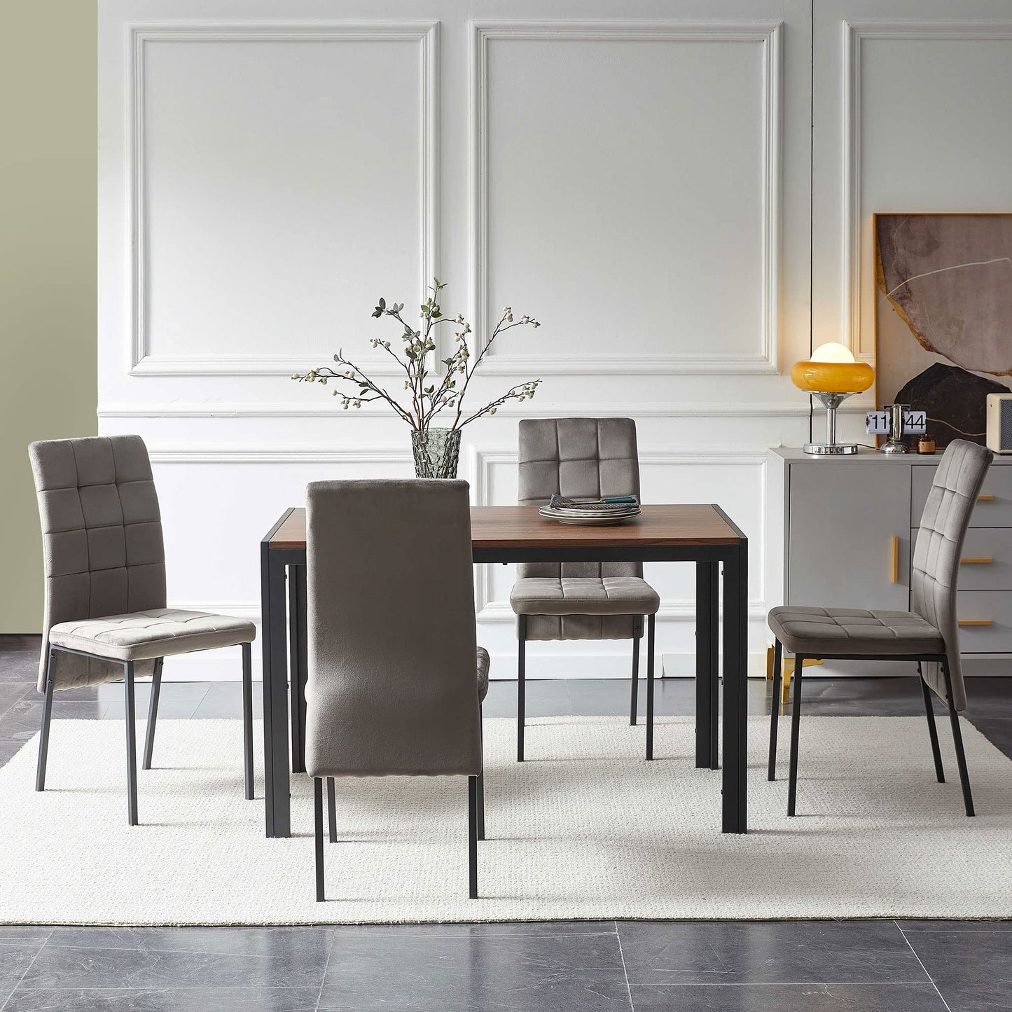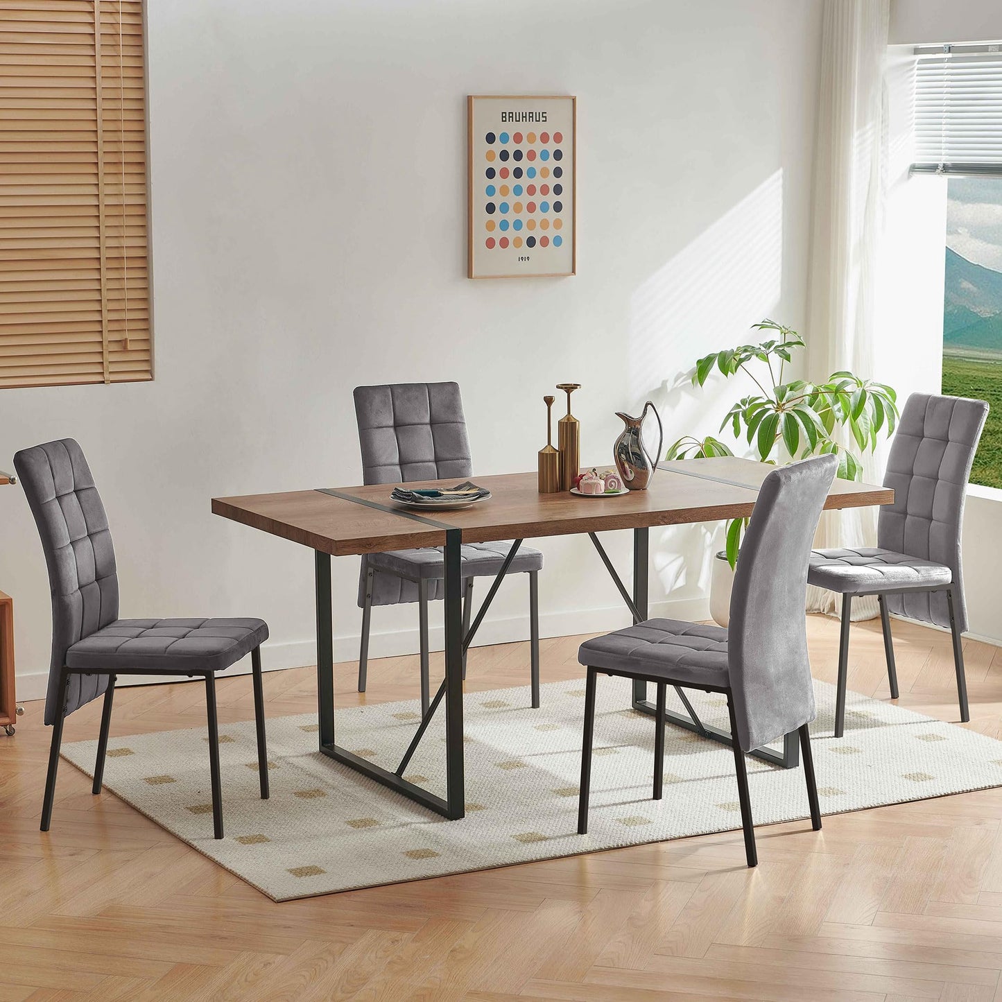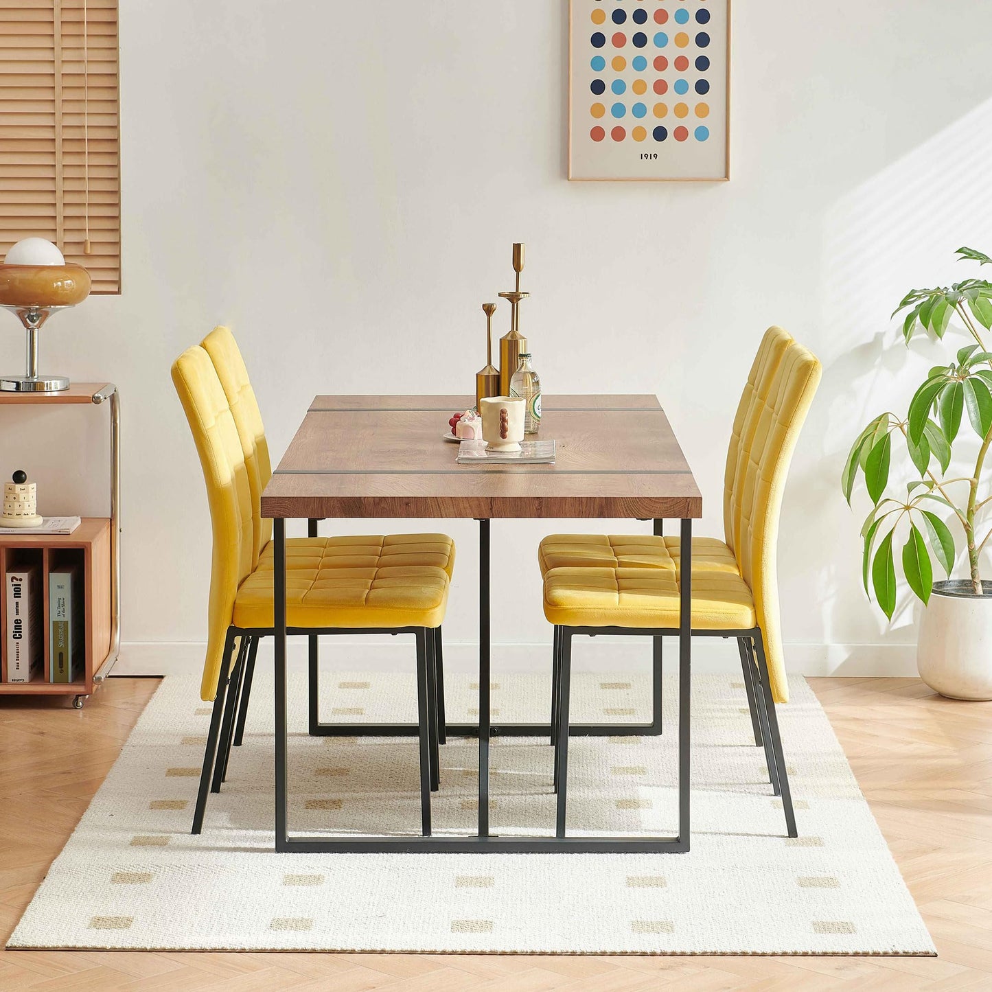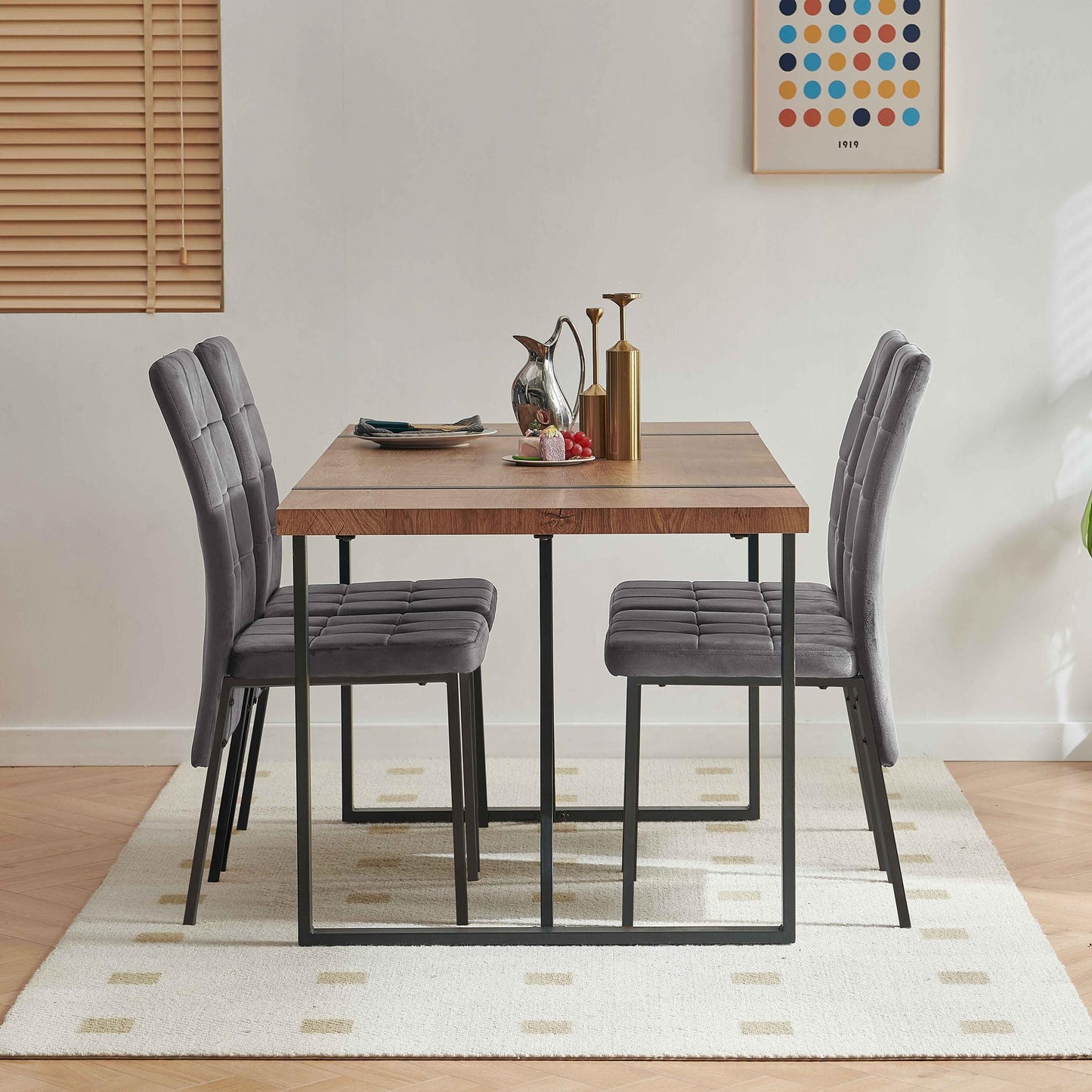NORDICANA Dining Table with 4 Chairs Set, Dining Room Chairs Set of 4 and Rectangular Dining Table, Velvet Cover, Upholstered Chair, MDF Panels, Wooden Table, Suitable for Kitchen, Office, Balcony