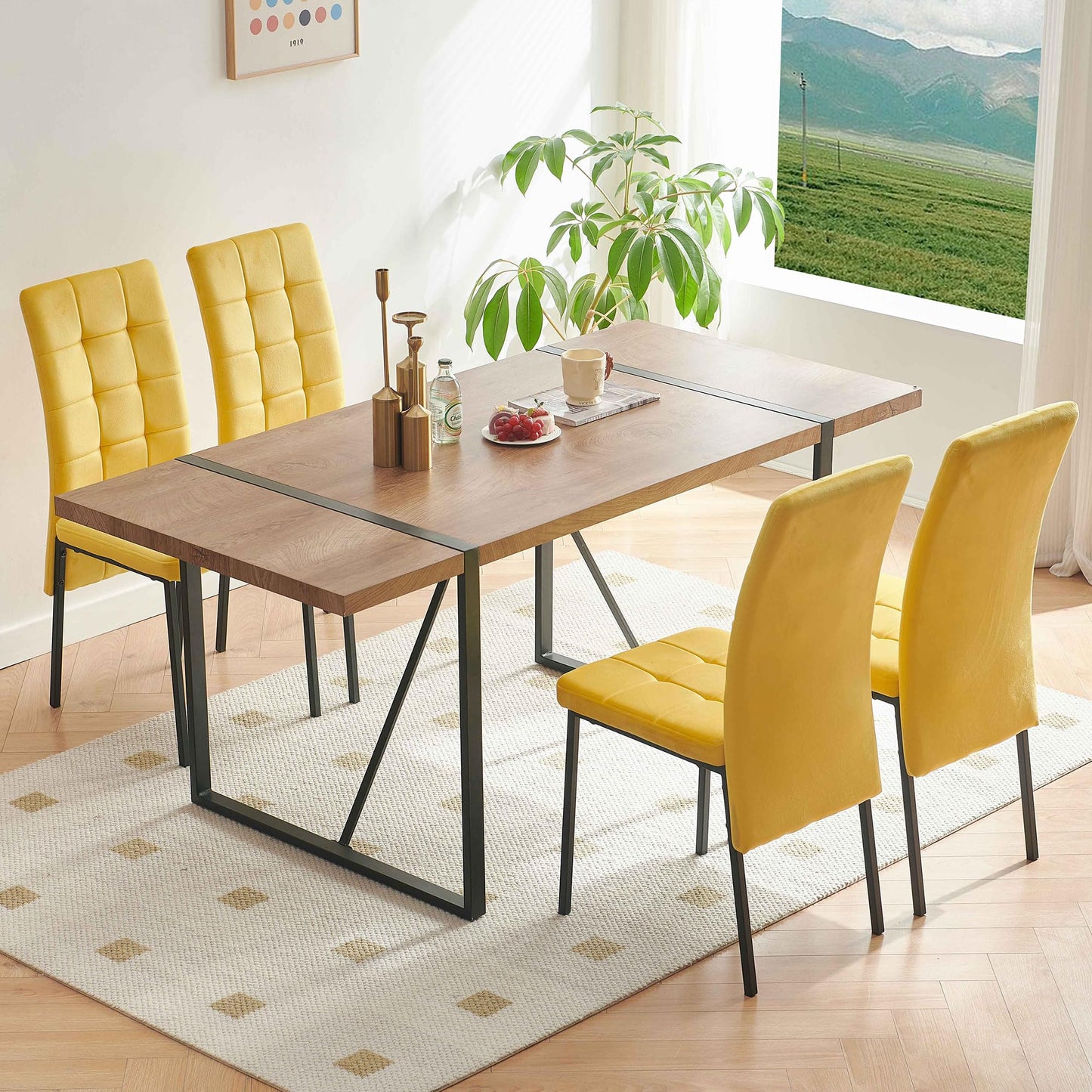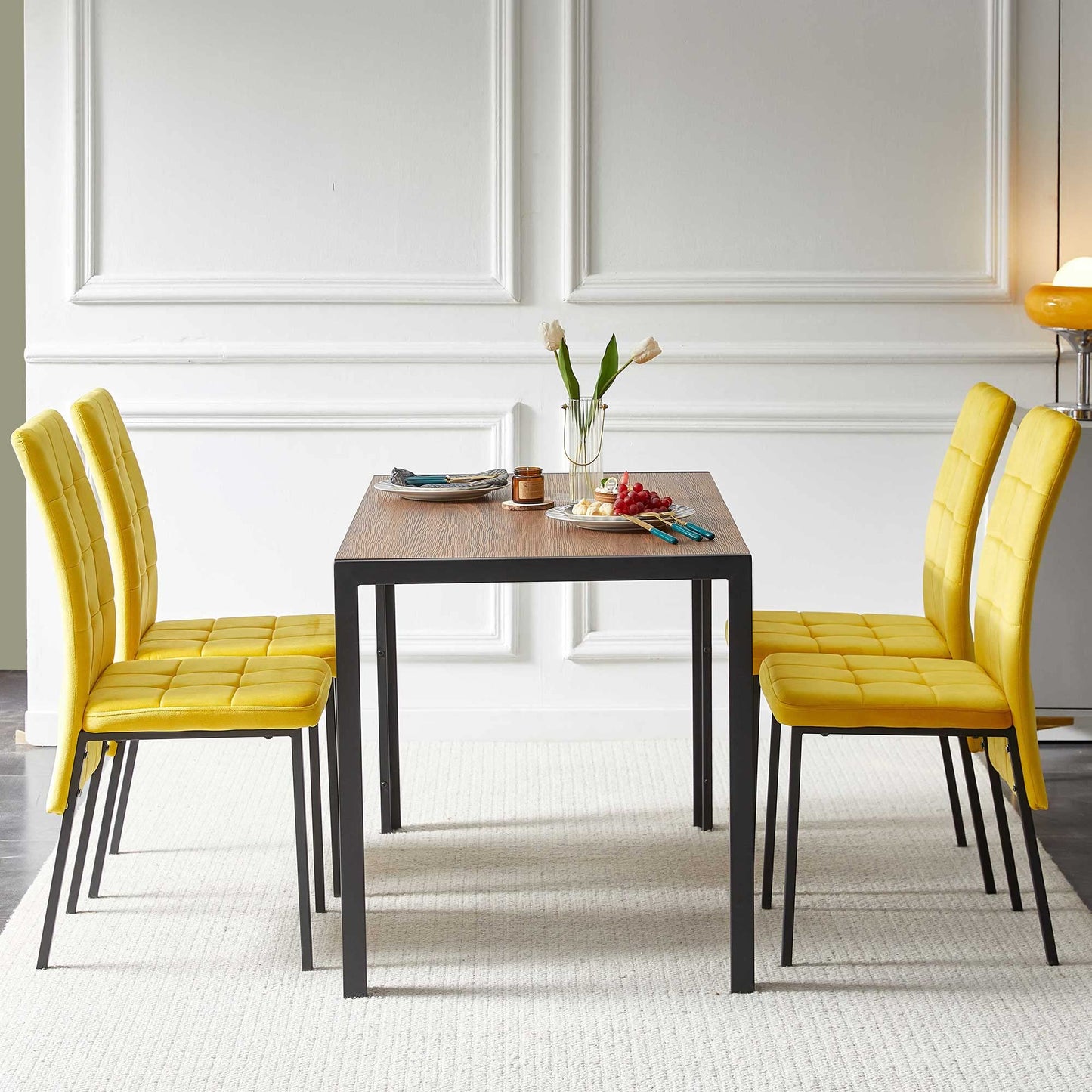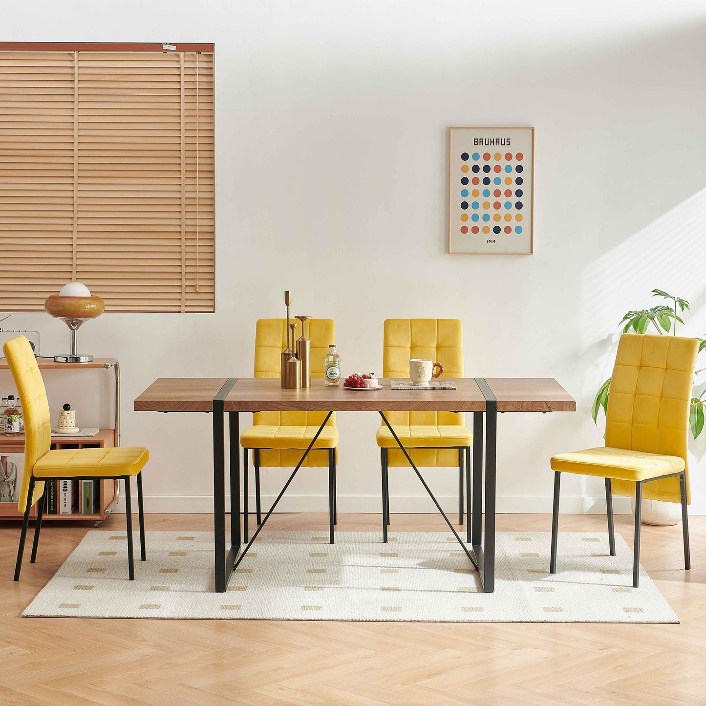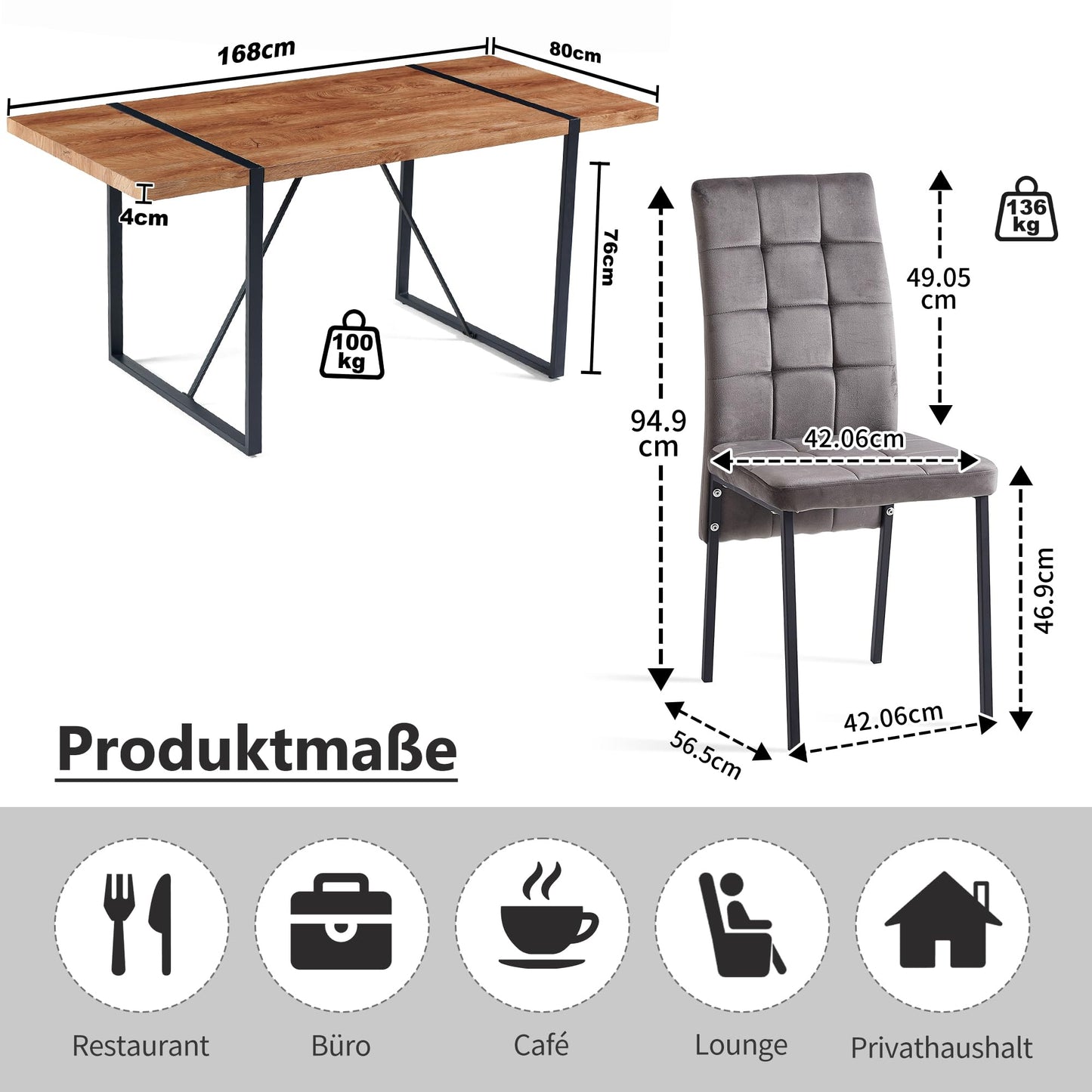 NORDICANA Dining Table with 4 Chairs Set, Dining Room Chairs Set of 4 and Rectangular Dining Table, Velvet Cover, Upholstered Chair, MDF Panels, Wooden Table, Suitable for Kitchen, Office, Balcony