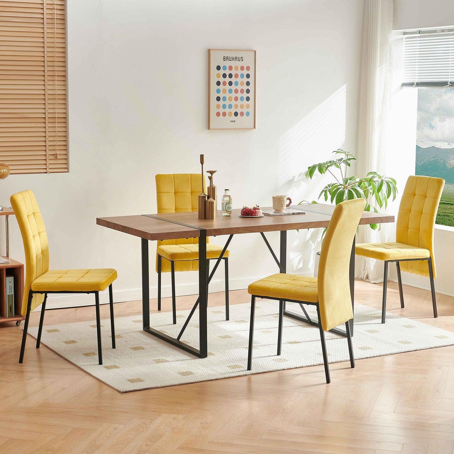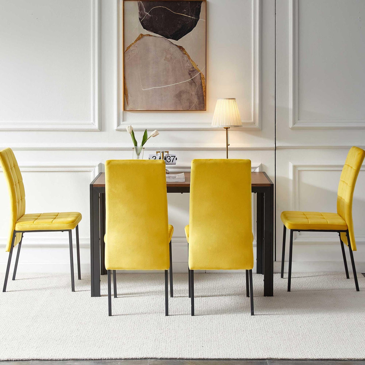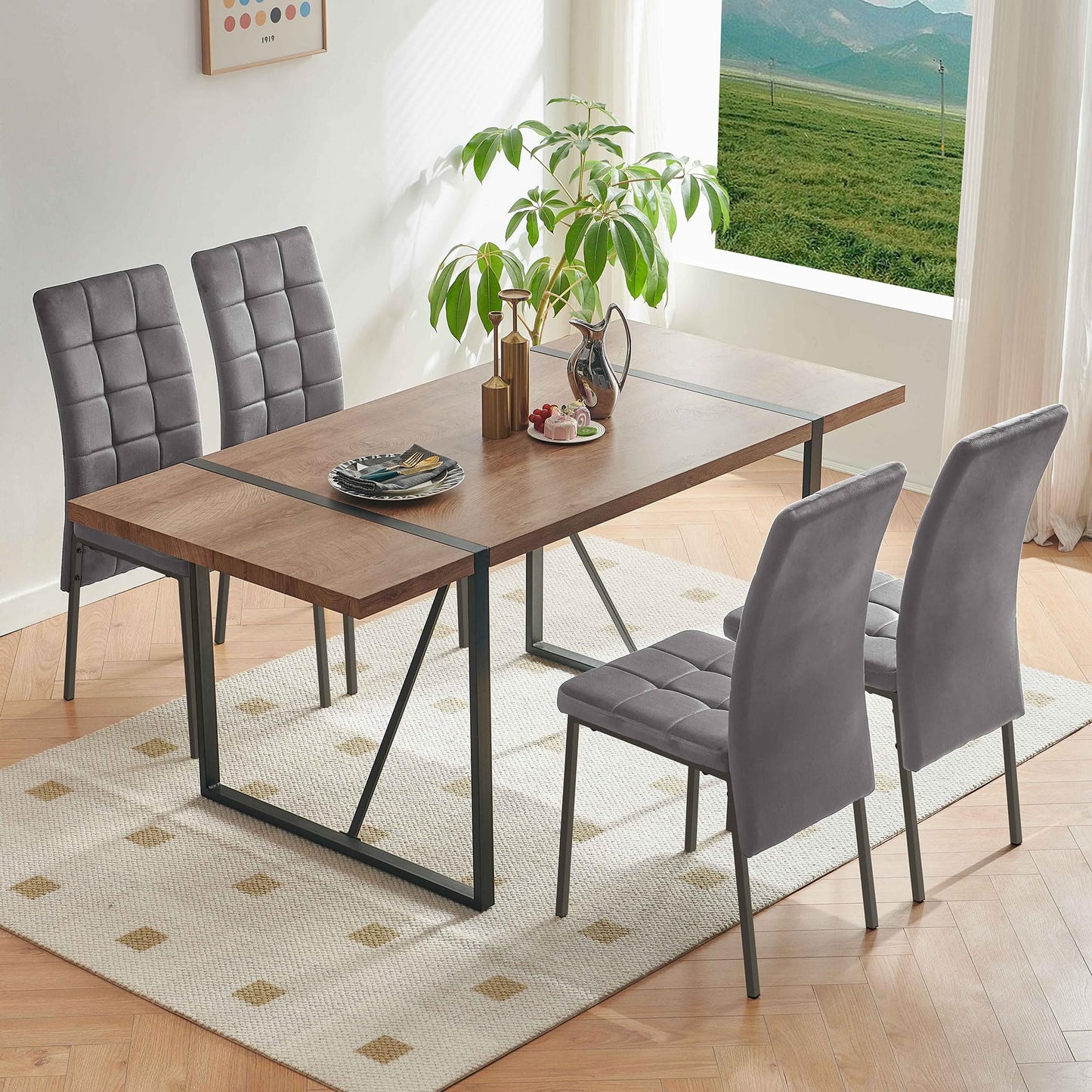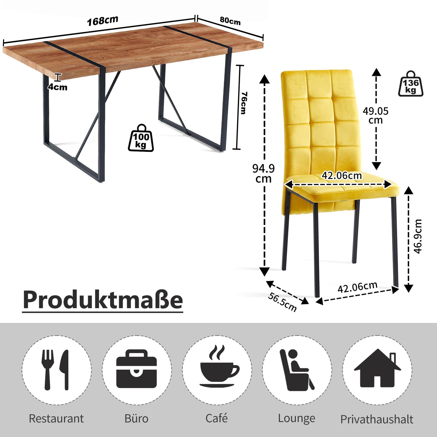 NORDICANA Dining Table with 4 Chairs Set, Dining Room Chairs Set of 4 and Rectangular Dining Table, Velvet Cover, Upholstered Chair, MDF Panels, Wooden Table, Suitable for Kitchen, Office, Balcony