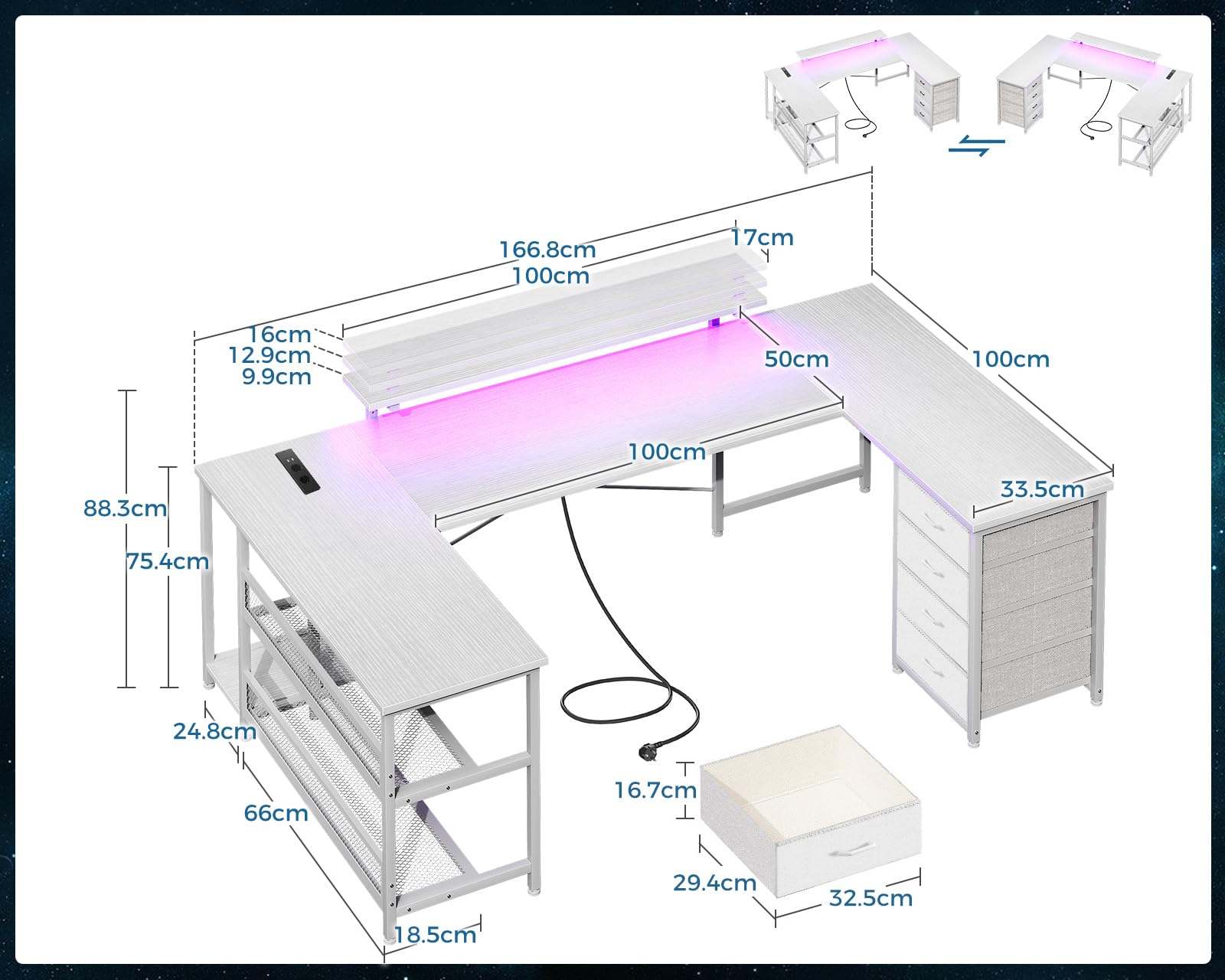 - Reversible and adjustable: When installing the corner desk, you can choose whether you want to attach the drawer to the left or right depending on the usage habits. The height-adjustable monitor stand ensures an ergonomic viewing height and a better sitting posture to prevent neck and back pain.