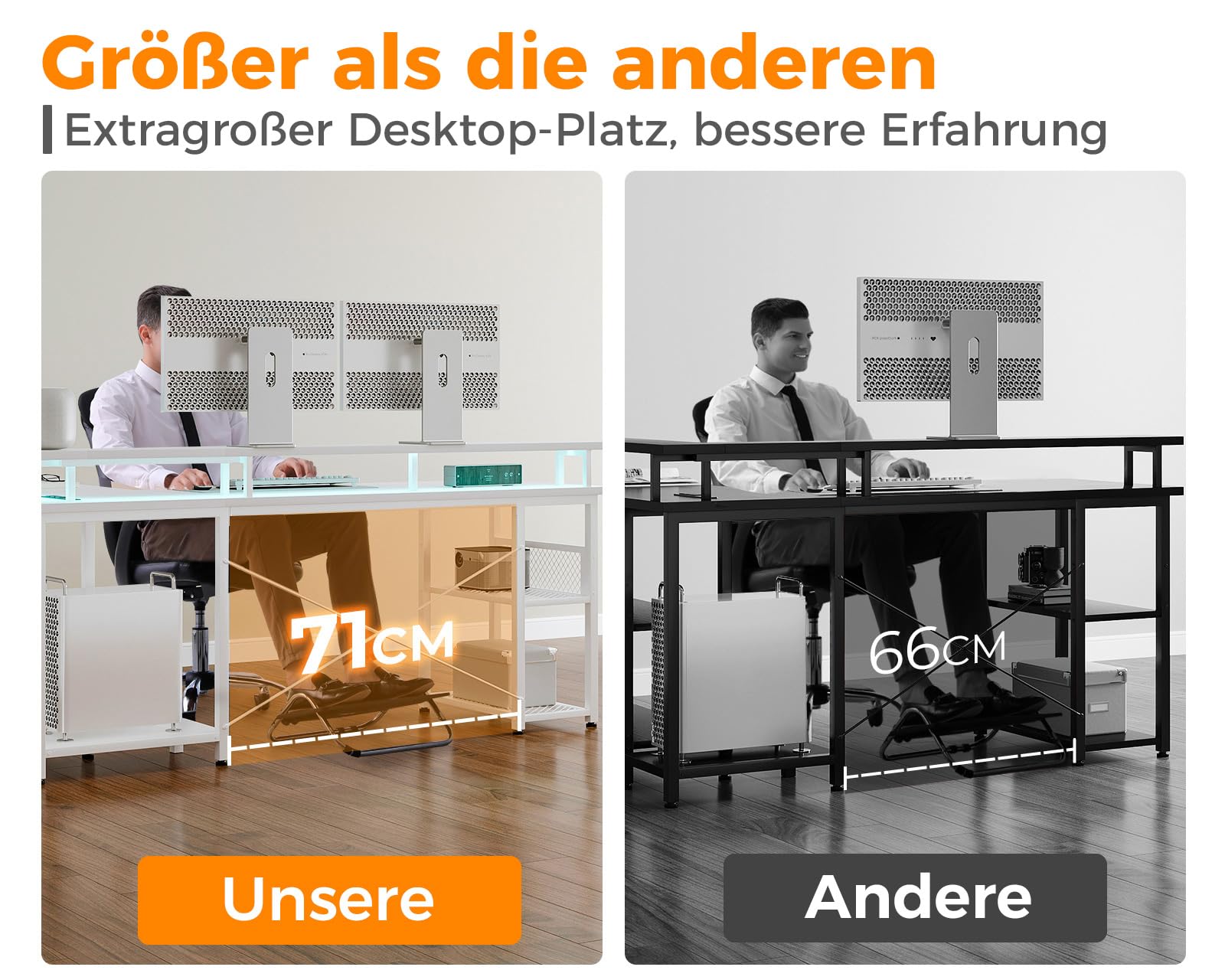 - 【Lighting as desired】The gaming desk is equipped with an LED strip, which provides 13 different lighting modes and 7 colour changes. Create a pleasant working atmosphere and adjust the lighting to your style.