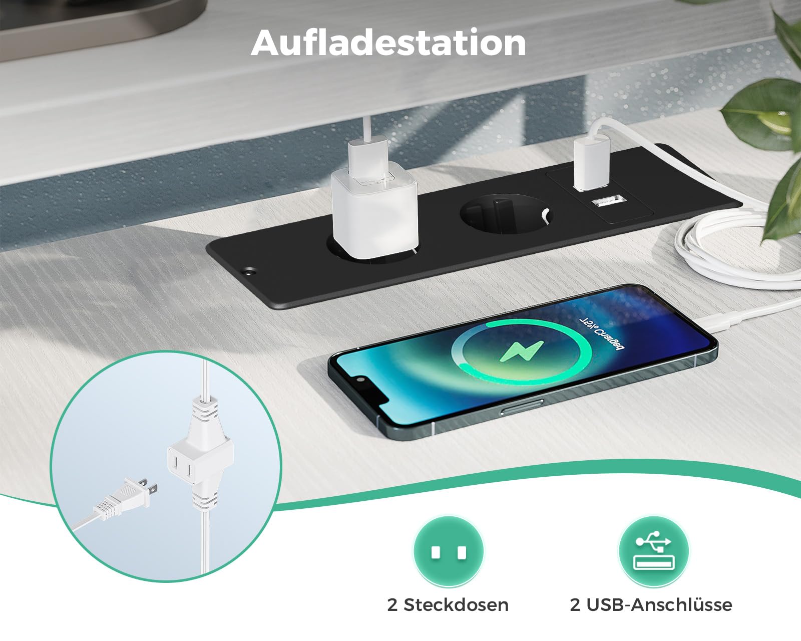 - Charging station: there are 2 sockets and 2 USB charging ports. Power your electronic devices, keep the table surface tidy and safe and improve the aesthetics of your home or office.