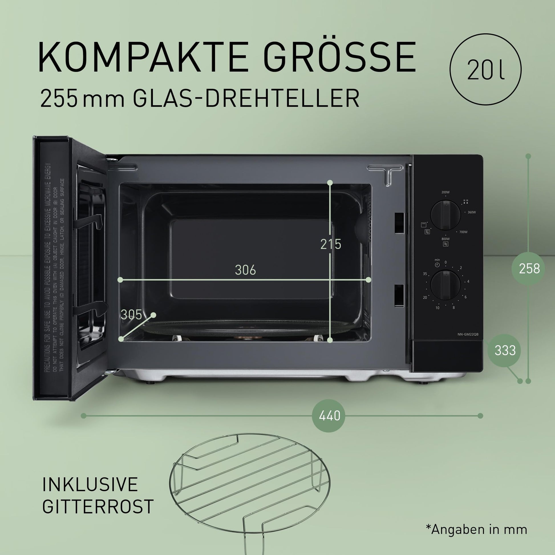 - COMPACT DESIGN Upgrade your kitchen with the sleek, minimalist design of this compact microwave with 20L capacity and use your kitchen area efficiently without sacrificing functionality