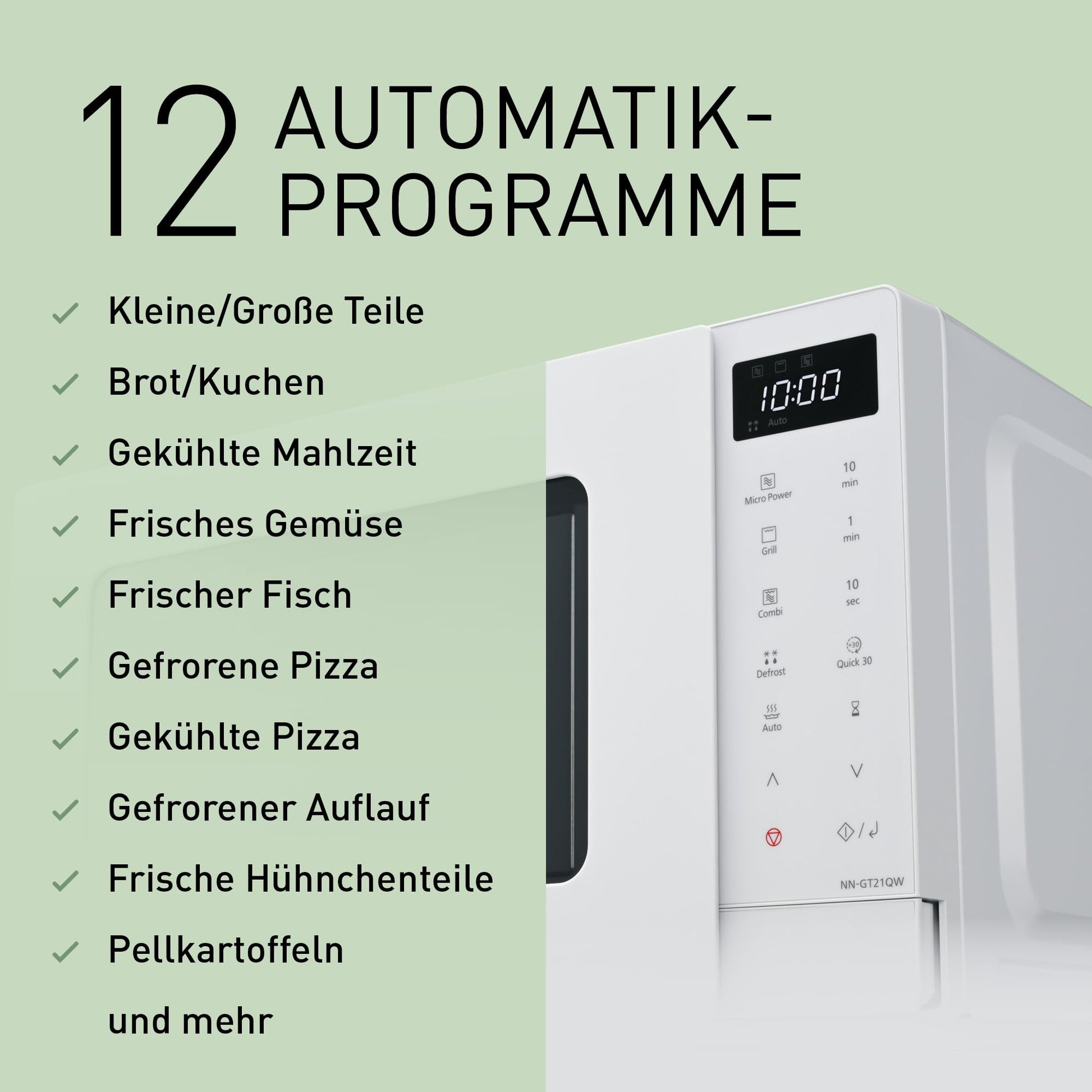 Panasonic NN-ST21QWEPG 20L Solo Microwave with Turntable, 800W, Automatic Defrost, 11 Automatic Programmes, LED Display, 5 Power Levels, Digital Timer, White