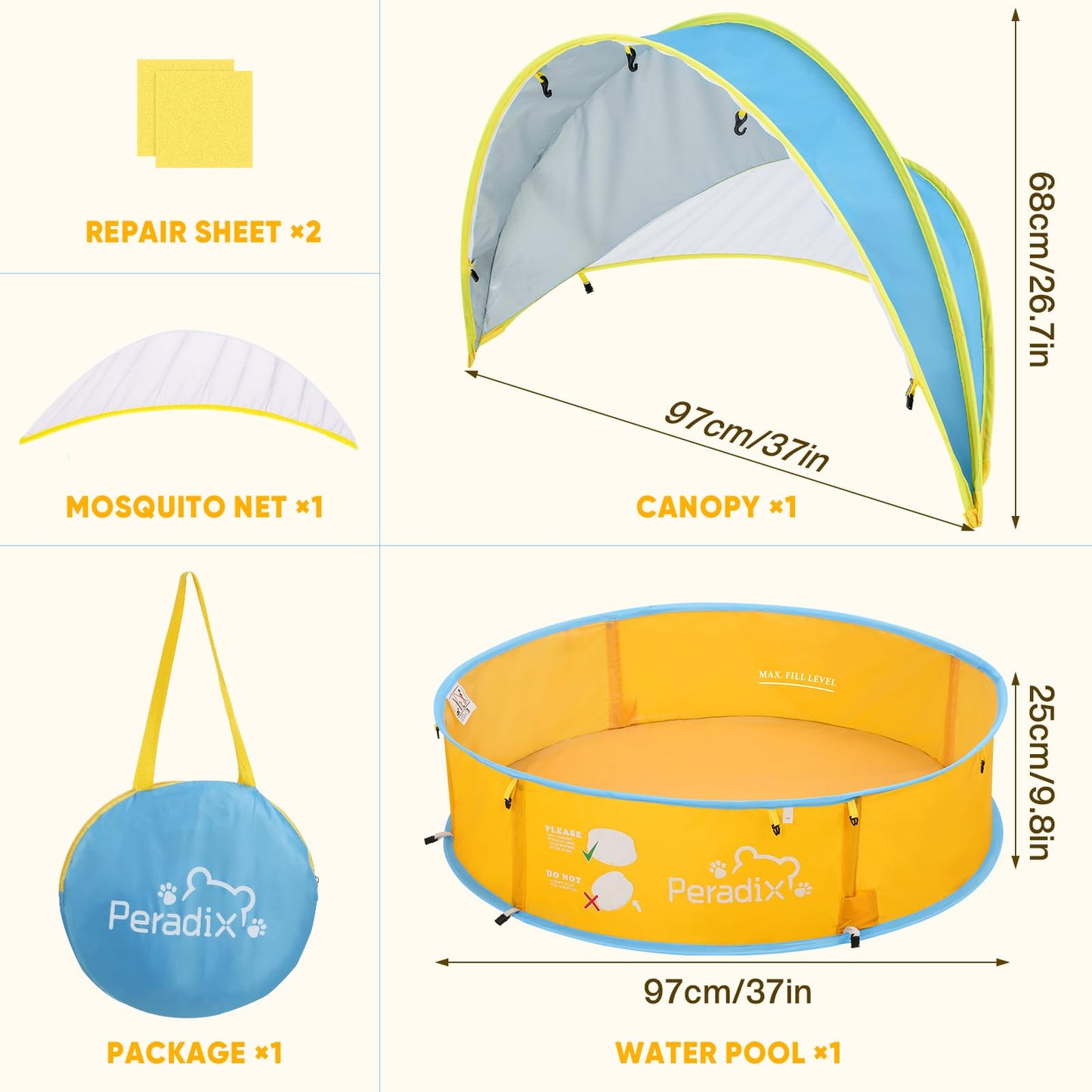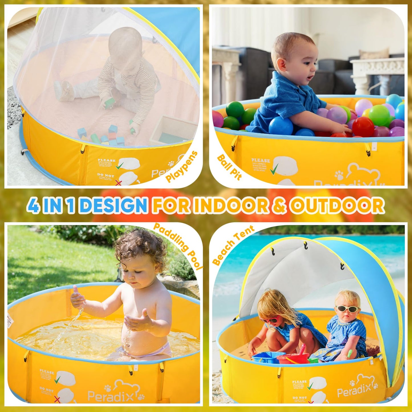 Peradix 4 in 1 Pop Up Baby Planschbecken,Babypool mit UV Schutz Bällepool, Baby Zelt Strandzelt mit Moskitonetz,Tragbare Spielzelt Bällebad Sonnenschutz Sommer für Jahre,(Blau)