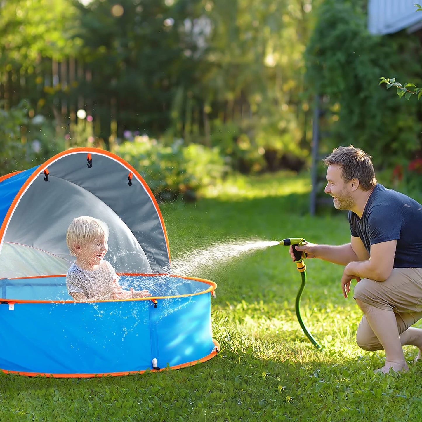 - 🧊🧊Komfort und Sicherheit:Das Planschbecken kann eine kleine Menge Wasser enthalten oder ohne Wasser verwendet werden. (Achten Sie darauf, dass der Wasserstand nicht die Warnlinie überschreitet)Die Kinder können im Schatten spielen und kühl bleiben. Die Einfache Schließ- und Klappfunktion ist ein großer Vorteil. Nach dem Gebrauch kehrt das Zelt mühelos in seine Originalverpackung zurück.