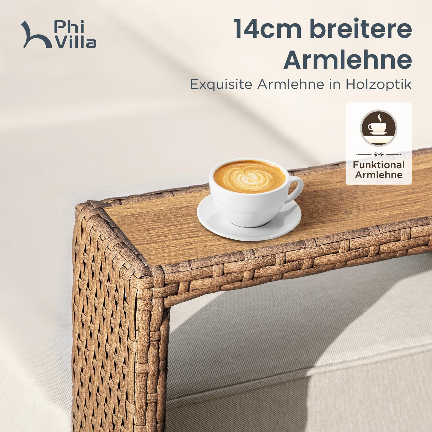 - Premium Gartenmöbel Set: Die Rattan-Gartenmöbel-Sets von PHI VILLA sind aus hochwertigem Rattan gefertigt und zeichnen sich durch hervorragende Formbarkeit, hohe Tragfähigkeit und gute Wasserdichtigkeit aus. Genießen Sie robuste Sitzmöbel, die verschiedenen Wetterbedingungen standhalten und Ihnen lange Freude in Ihrem Garten oder auf Ihrer Terrasse bereiten.