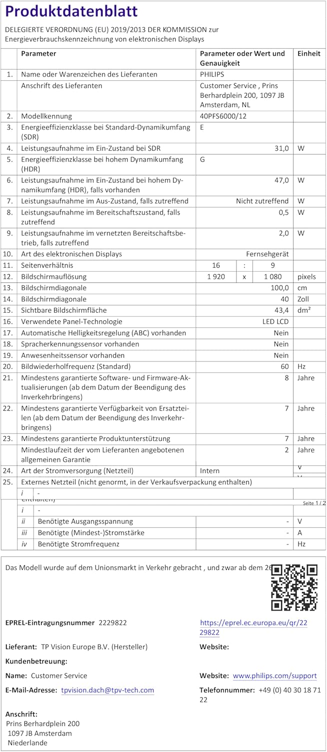 Philips 40PFS6000 HD LED Smart TV - 40 Zoll Display mit Pixel Plus, Titan OS Plattform Und Dolby Digital Sound - Funktioniert Mit Alexa Und Google Sprachassistent