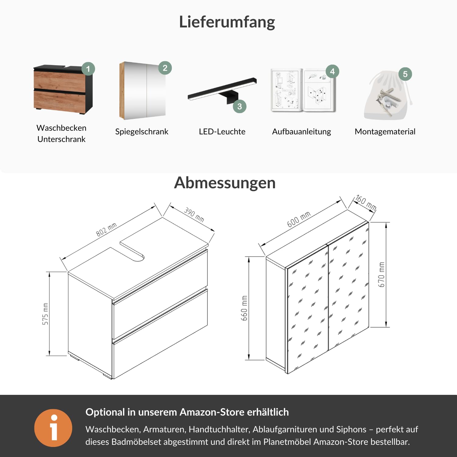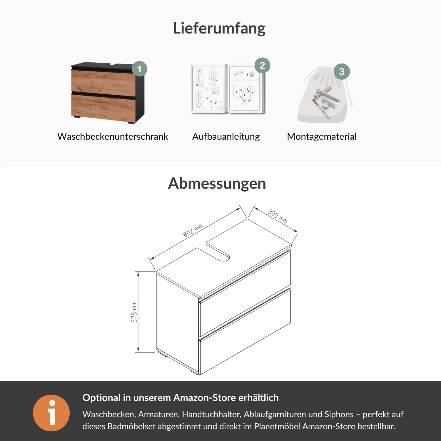 - Box contents and dimensions: 1 x vanity unit 80.2 x 57.5 x 39 cm, 1 x assembly instructions (English language not guaranteed), 1 x mounting material
