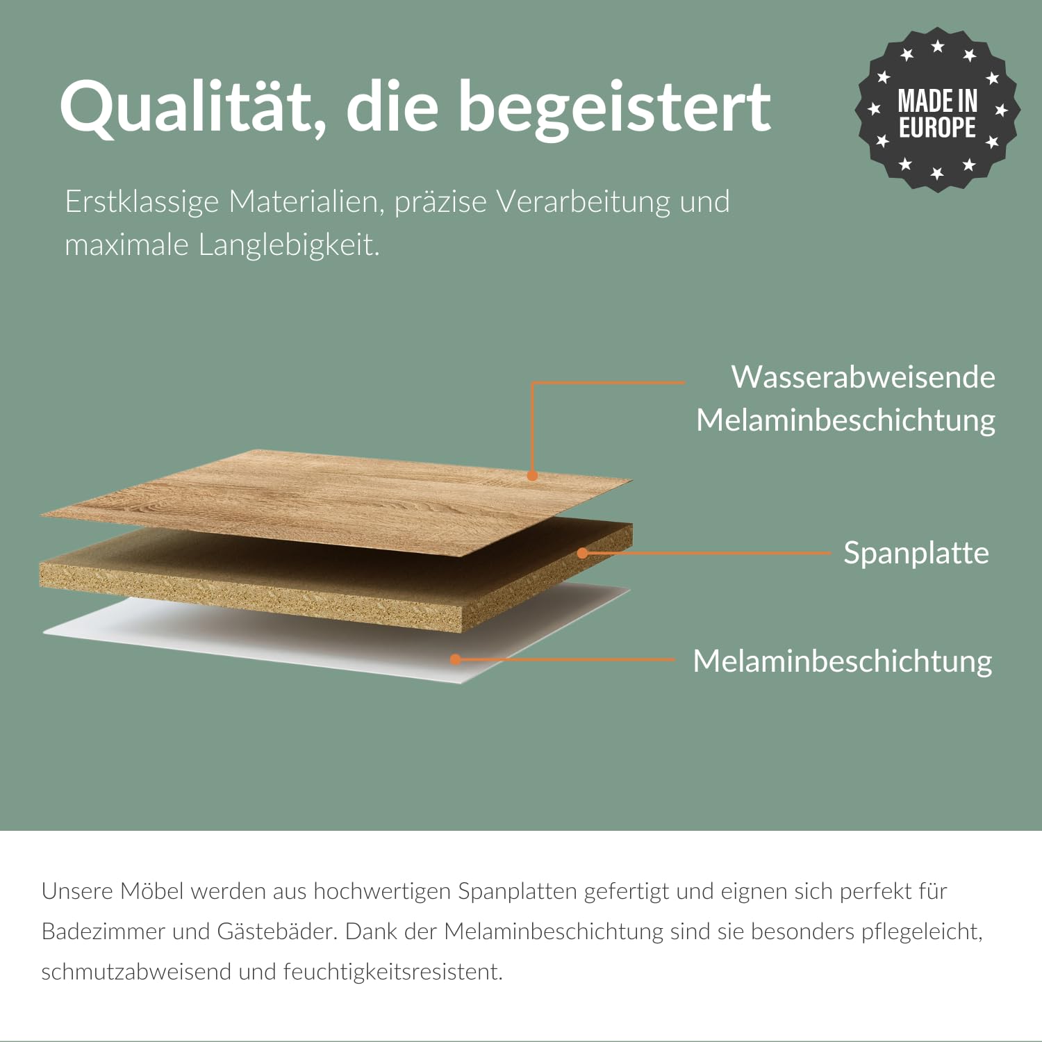 - Easy care: the smooth melamine coating makes cleaning the cabinet a breeze. A simple wipe is enough to preserve the beauty and cleanliness of your bathroom. Enjoy an easy-care piece of furniture that also sets a visual highlight.