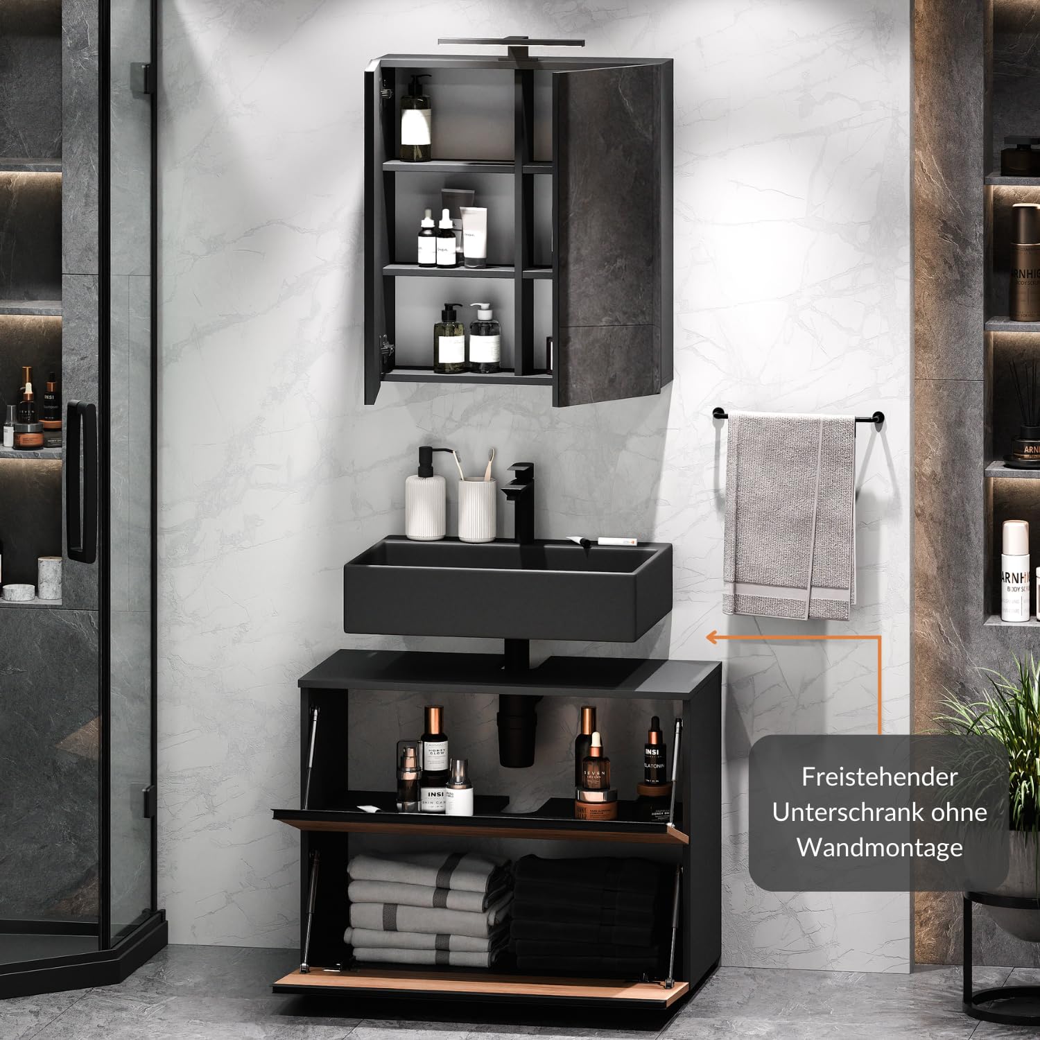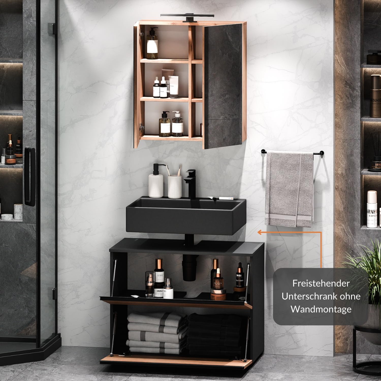 Planetmöbel EDA 80 cm Vanity Unit, Vanity Unit, Bathroom Cabinet for Guest Toilet and Bathroom, Anthracite/Gold Oak