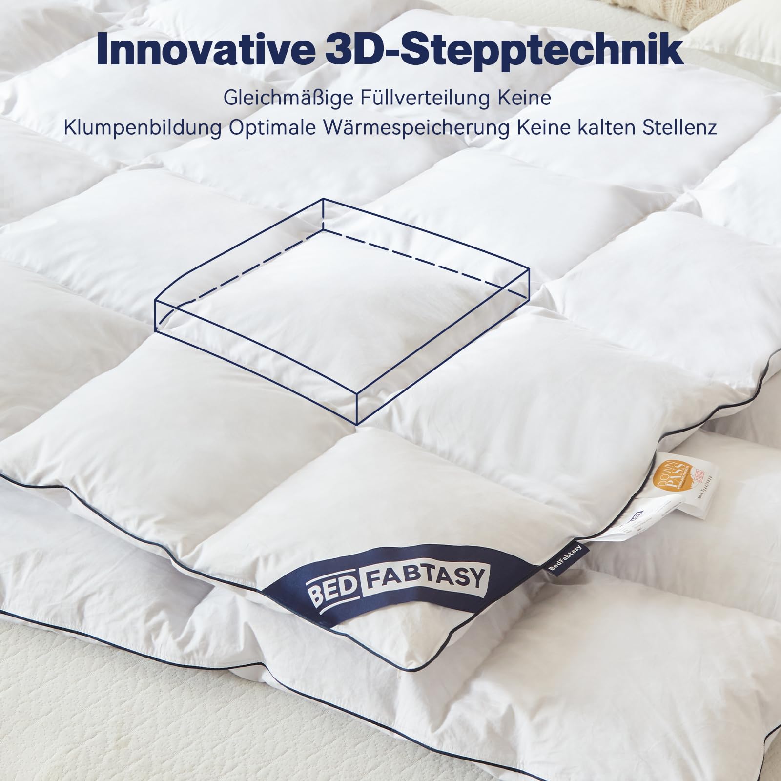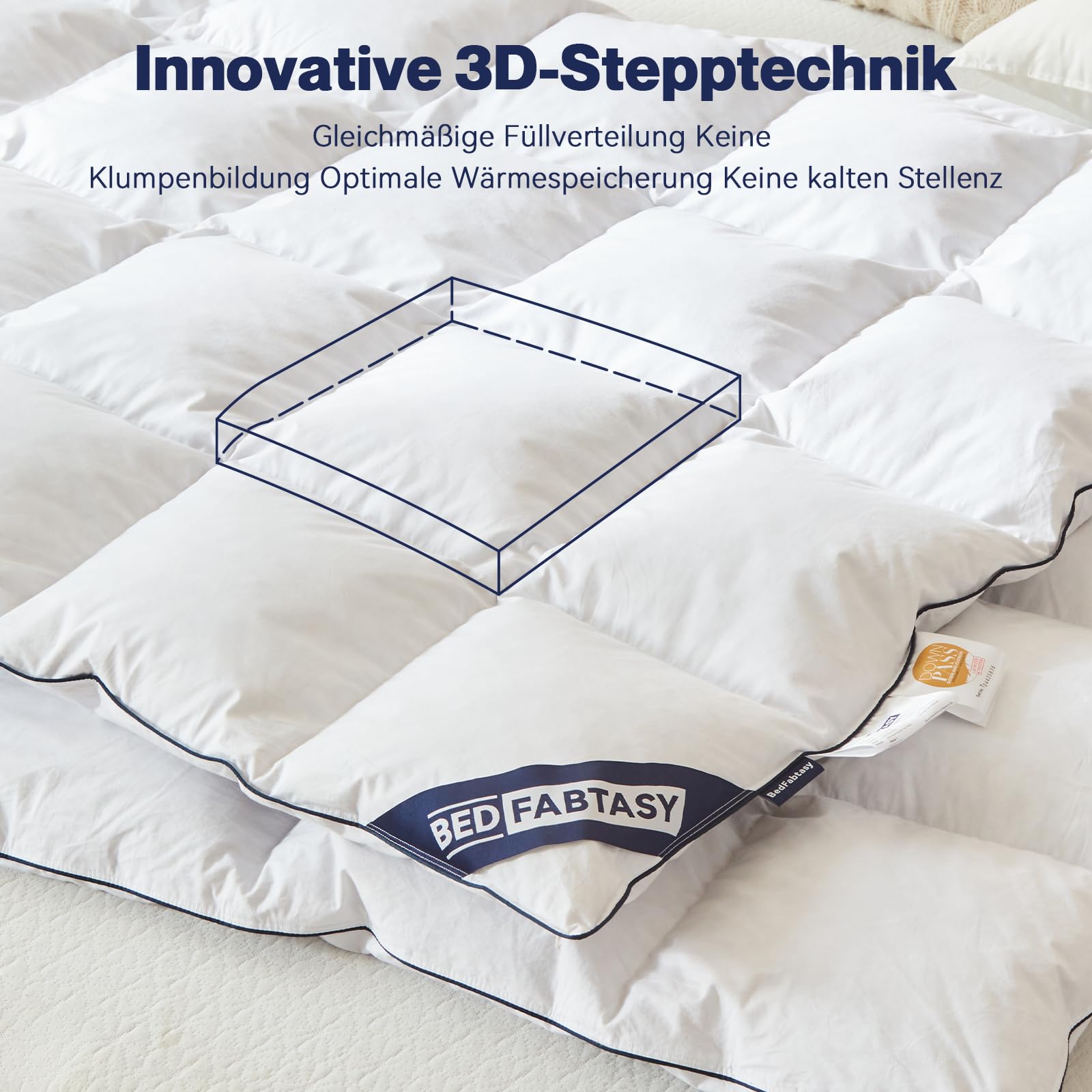 - High-quality down duvet - Our down duvet is fluffy and cosy. They are filled with a blend of 10% goose down and 90% goose feathers. The BedFabtasy duvet offers exceptional softness, warmth and the perfect weight for a restful night's sleep
