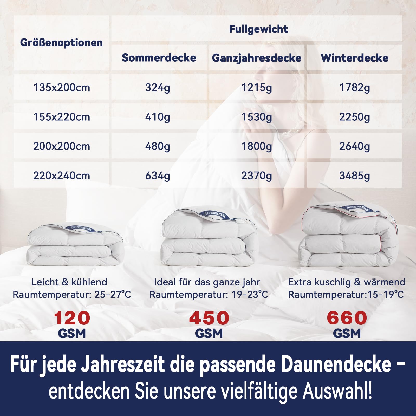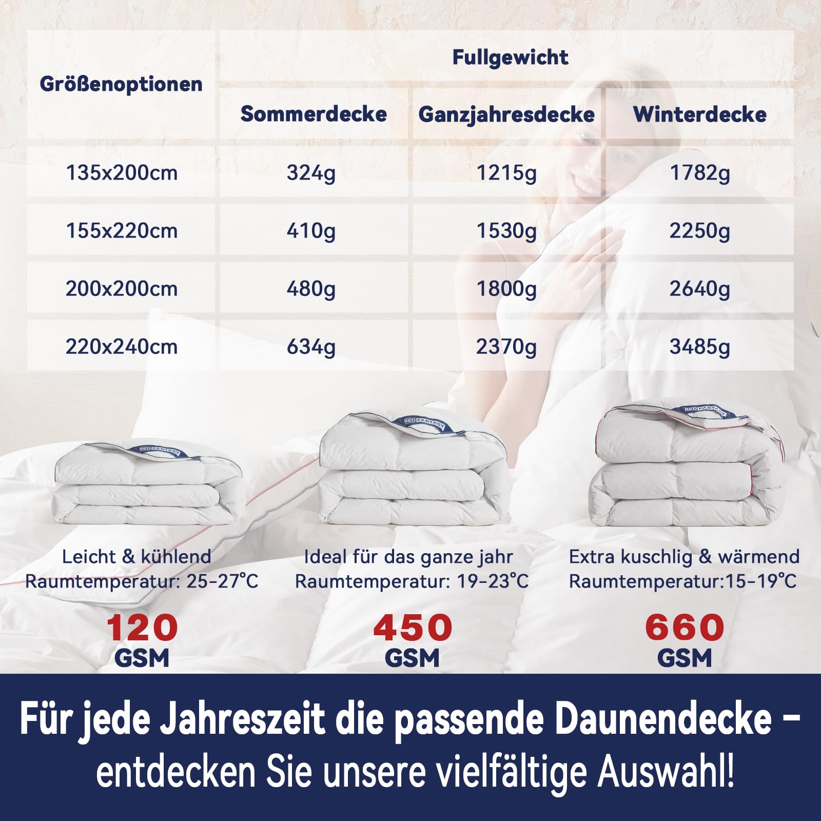Premium Down Duvet 135 x 200 cm Summer Duvet, Lightweight Summer Duvet 135 x 200 cm with Premium Goose Down and Feathers, 100% Silent Organic Cotton, Oeko-Tex 100, Down Pass, RDS Certified