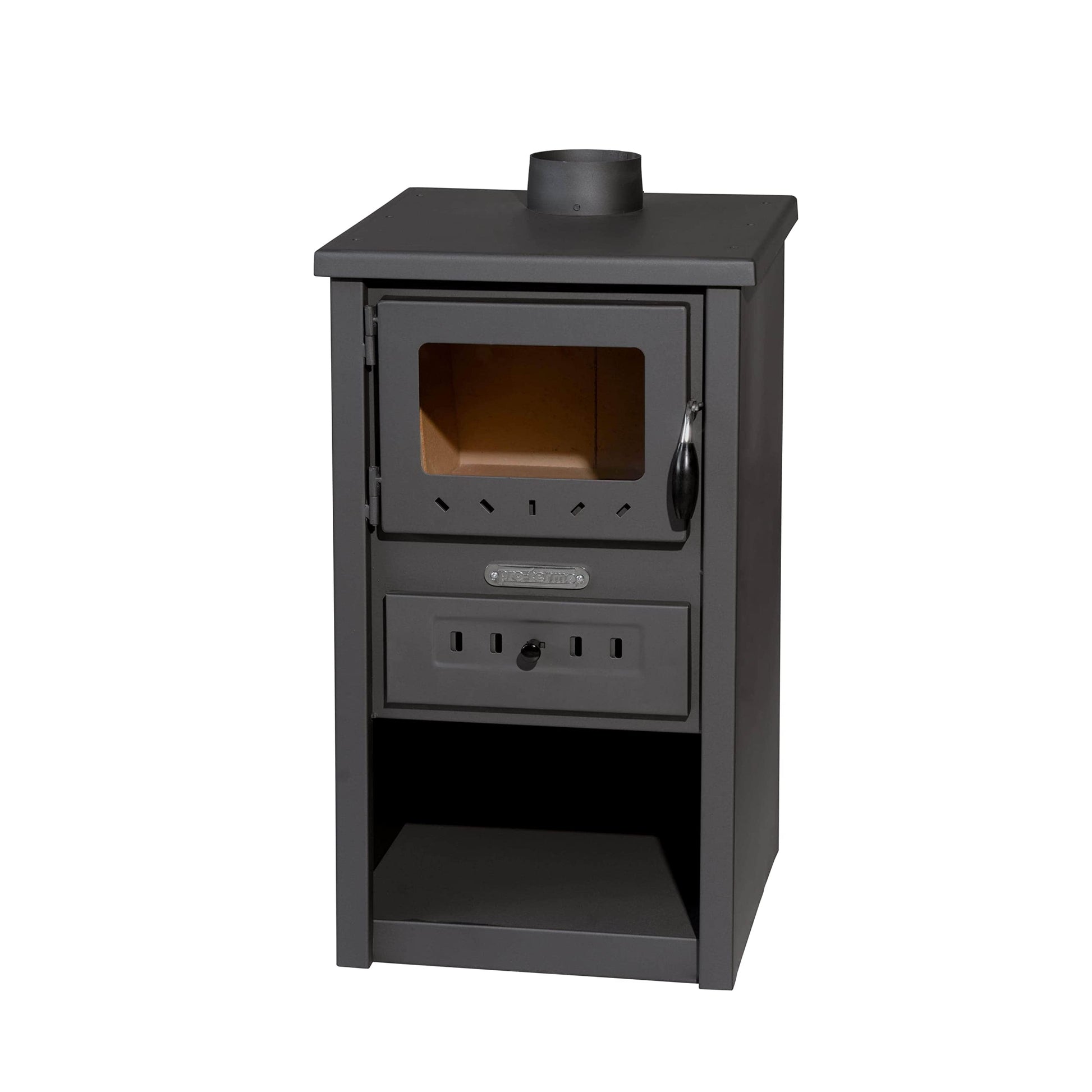 ProTermo Nova S Fireplace Anthracite / Black - 7.5 kW Heating Output - 43 x 46 x 74 cm Wood Stove with Fireclay Stones with Viewing Window - Type 2