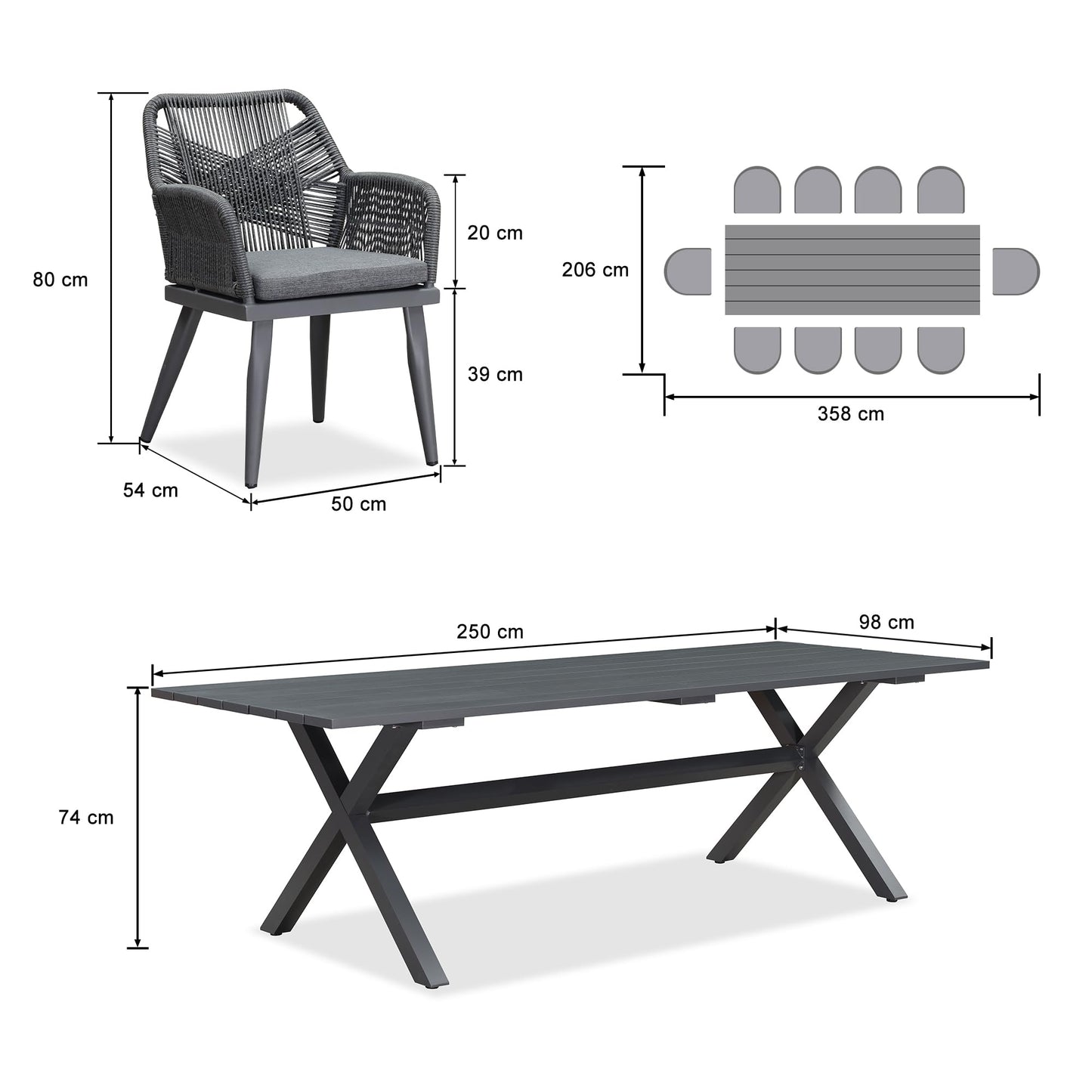 PURPLE LEAF 9-TLG Gartenmöbel Set,Aluminium Terrassenmöbel 8 Gartenstühle mit Tisch Balkonmöbel Essgruppe Gartengarnitur, Grau