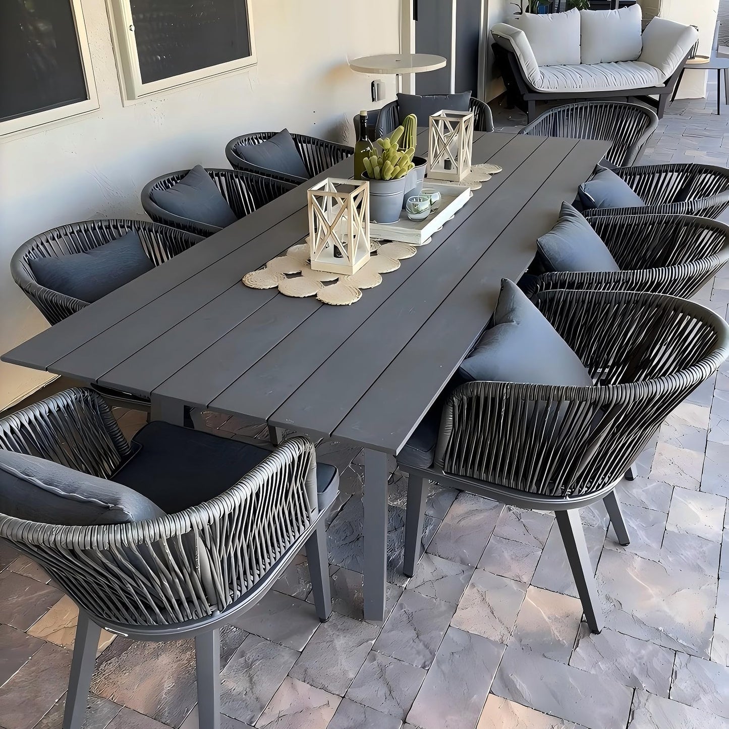 - 【Gartenmöbel Set】 Dieses Esszimmer-Set für den Außenbereich umfasst 8 Esszimmerstühle und 1 rechteckigen Esstisch.