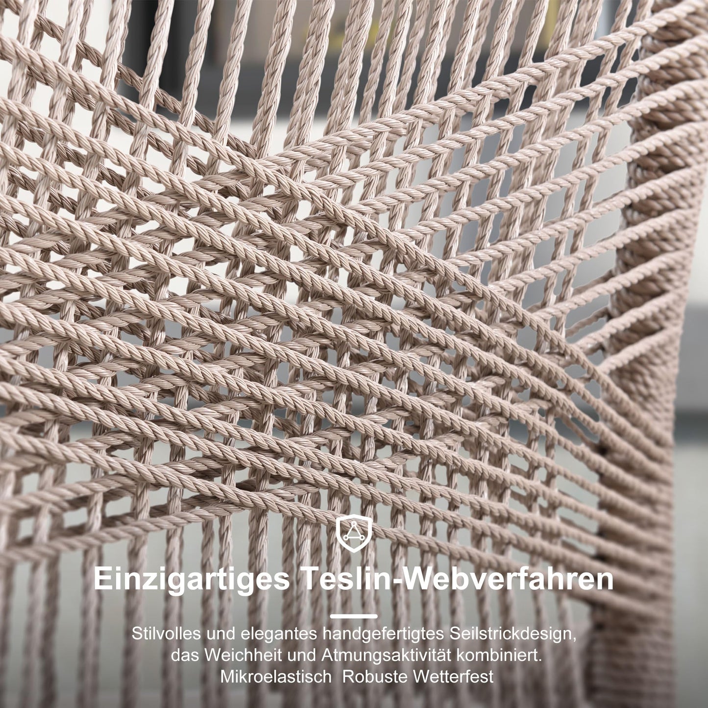 - 【All Wetter PE Rattan】 Hergestellt aus strapazierfähigem Sitzgeflecht, ist es nicht nur langlebig, sondern auch vielseitig im Aussehen. Die handgefertigten Details dieses Materials ermöglichen es, dass das gesamte Terrassenmöbel-Set perfekt mit Ihrem Outdoor-Dekor harmoniert.