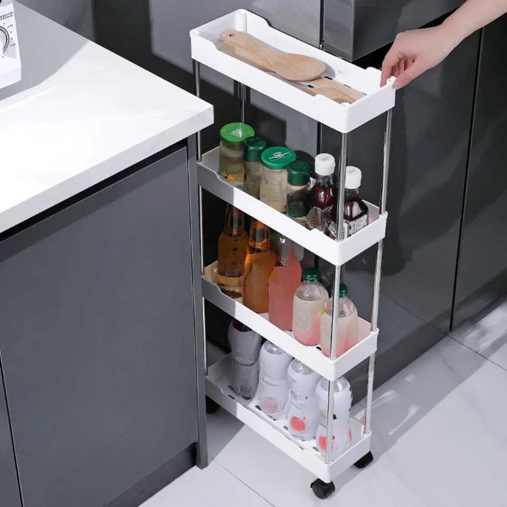 3/4-tier slimline storage trolley is designed for storage in tight spaces in your home.