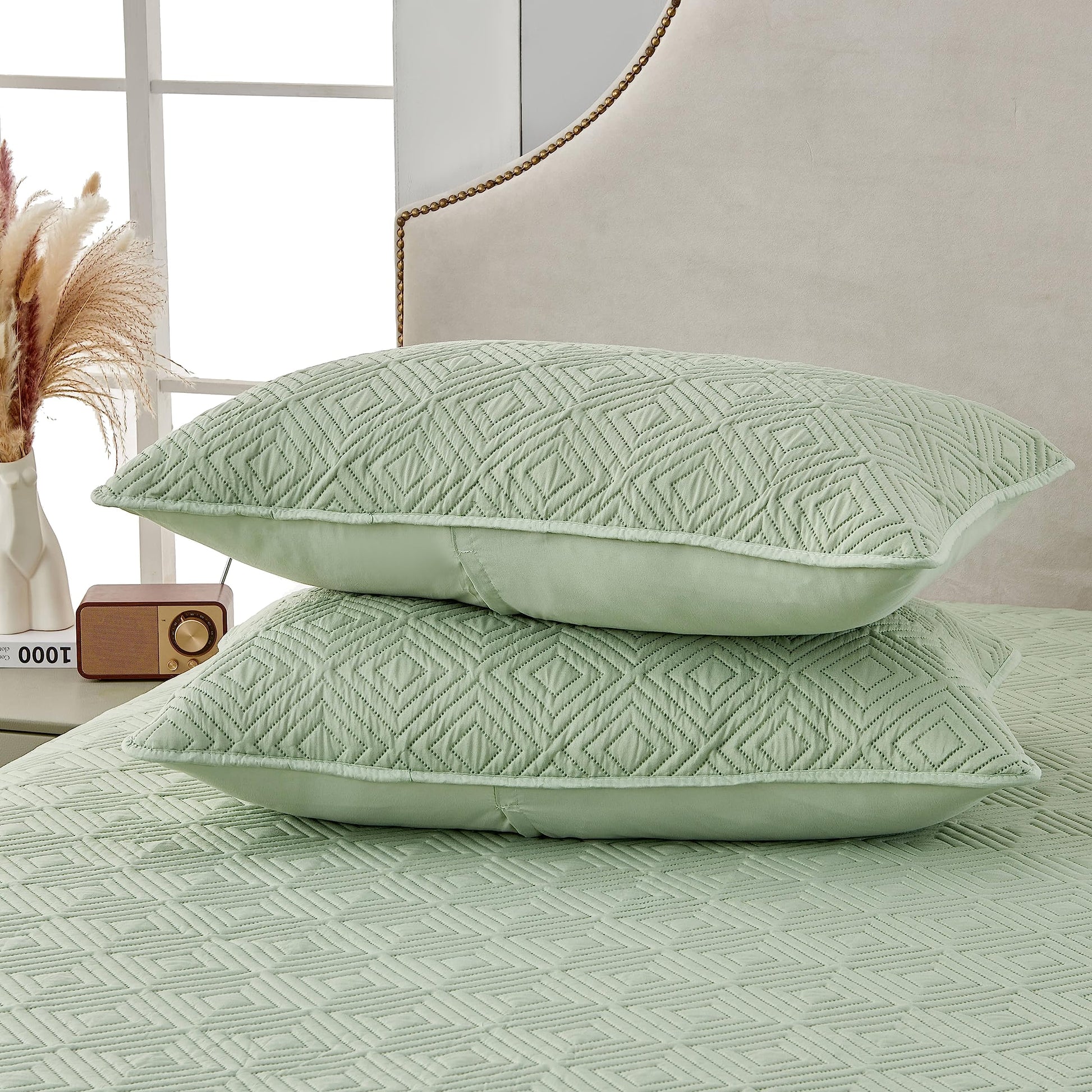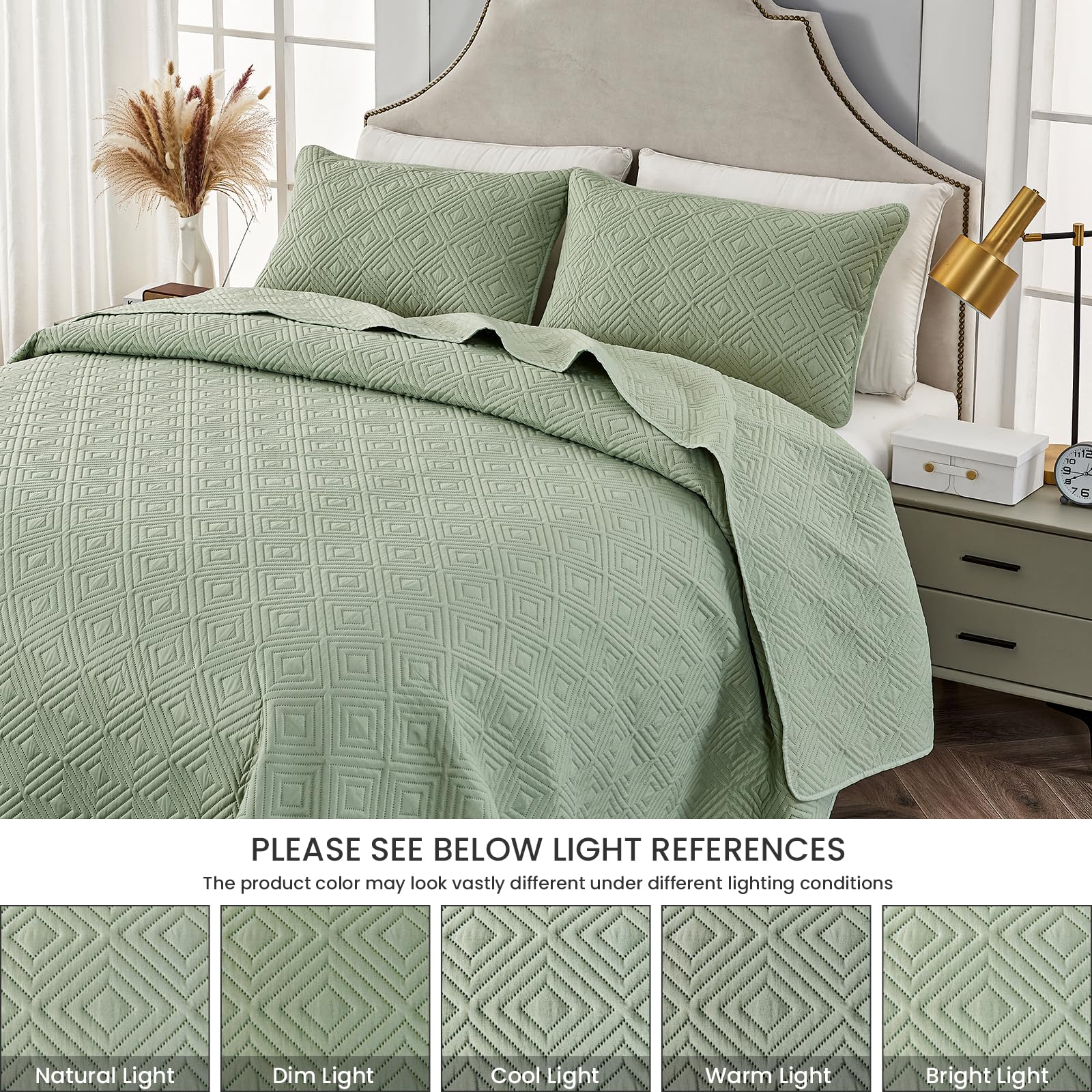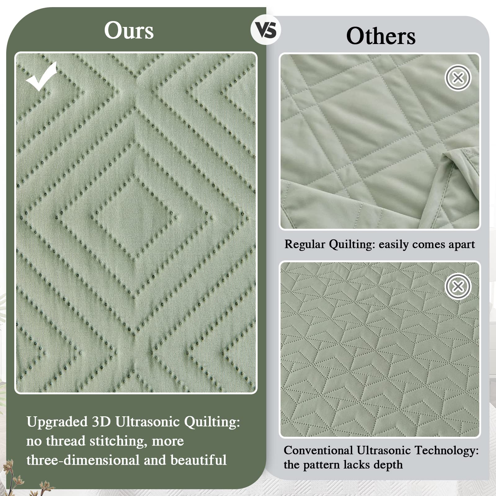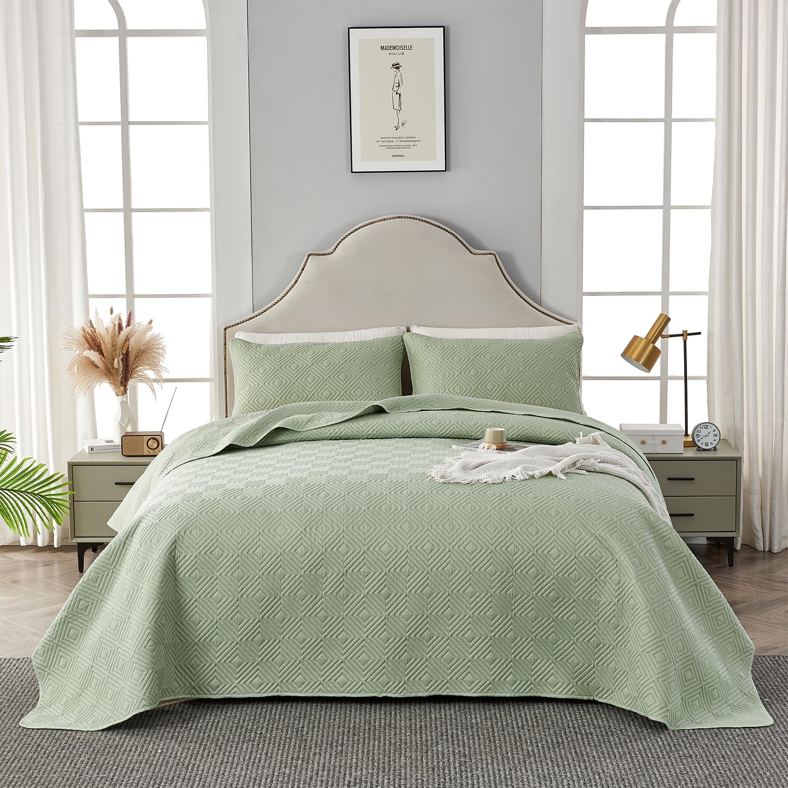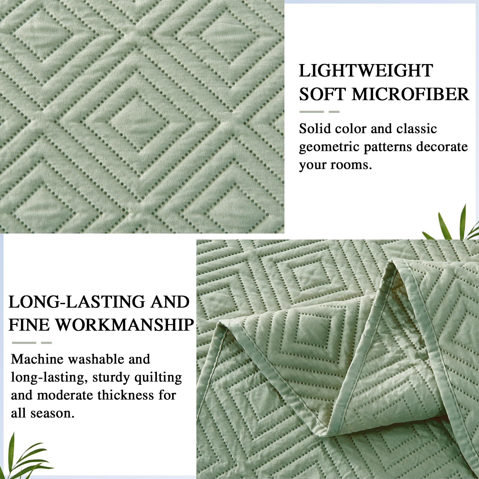 Qucover Tagesdecke Bettüberwurf 220x240cm Grün, Bedspreads aus Mikrofaser, Bettüberwuf Set mit 2 Kissenbezügen 50x75cm,Steppdecke bei 3D-Ultraschal genäht, Sofaüberwurf Bettüberwurf Überwurfdecke