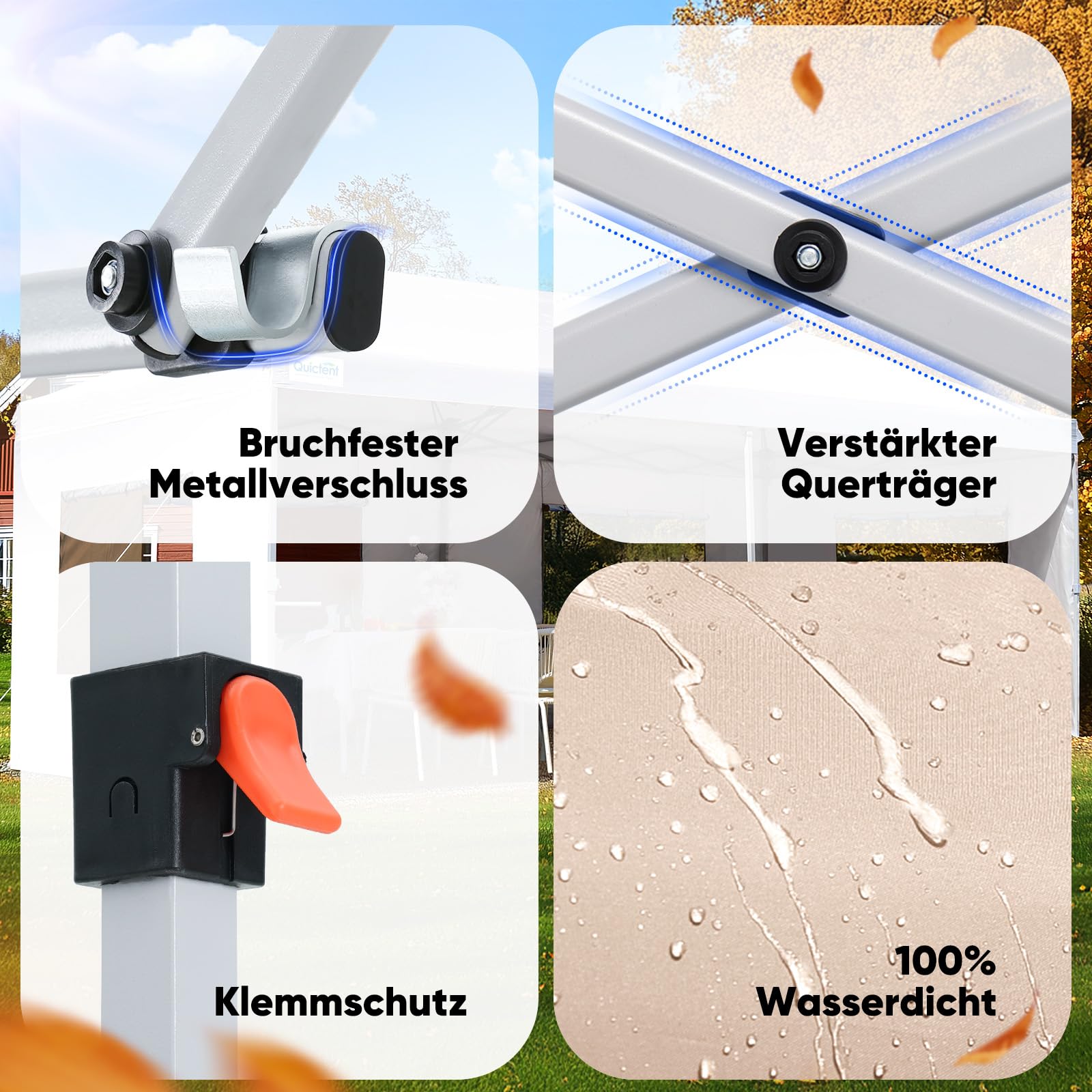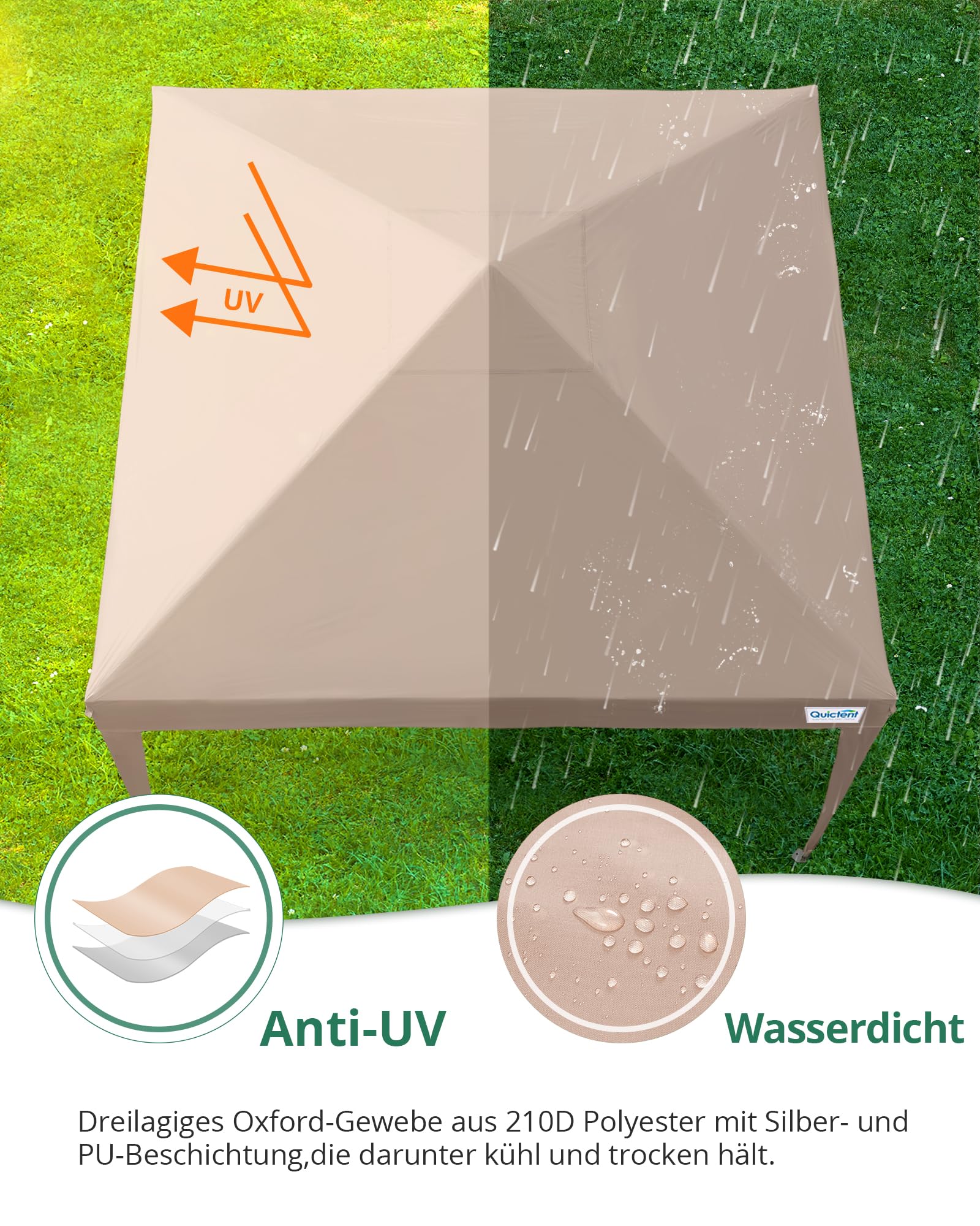 Quictent Gazebo 3 x 3 Folding Gazebo with 4 Side Panels, Waterproof Garden Gazebo (Khaki)