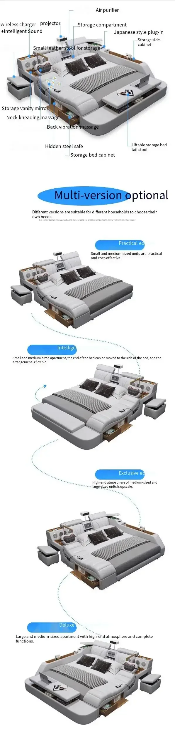 Regale Storage Double Bed Projector Antique Bedroom Comferter Beds Adults Flexible Sleeping Letto Matrimoniale Salon Furniture