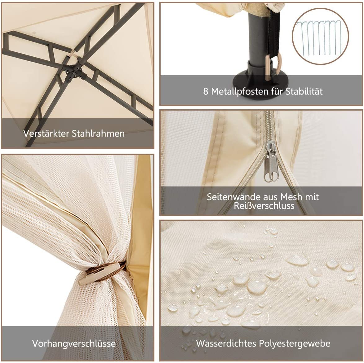 - ★ Easy to assemble and disassemble ★ The garden gazebo is easy and time-saving to assemble and disassemble, just follow the step by step instructions (English language not guaranteed). In addition, this garden gazebo can be assembled and dismantled without much effort.