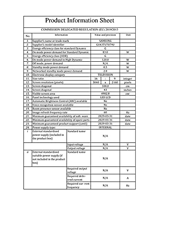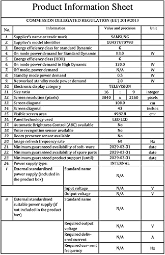 | Included components | GU43TU7079UXZG, remote control including batteries: numeric, power cable, instructions (English language not guaranteed) See more |