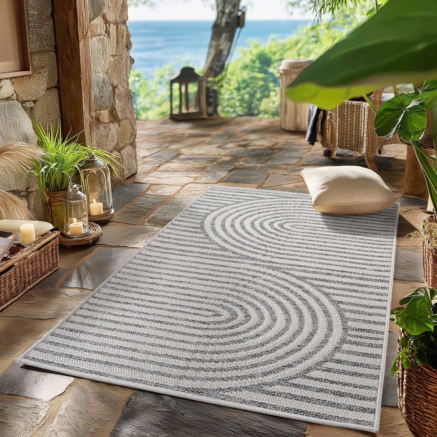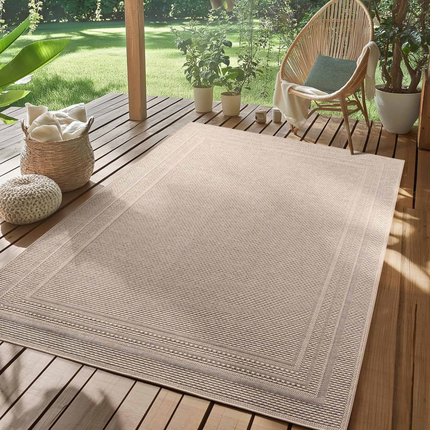 SIMPEX Outdoor Teppich Wetterfest Beige 140x200 cm, UV-beständig, ideal für Küche, Balkon, Terrasse, Garten Wohnzimmer Esszimmer, Skandinavisches Boho-Design, Pfelgeleicht