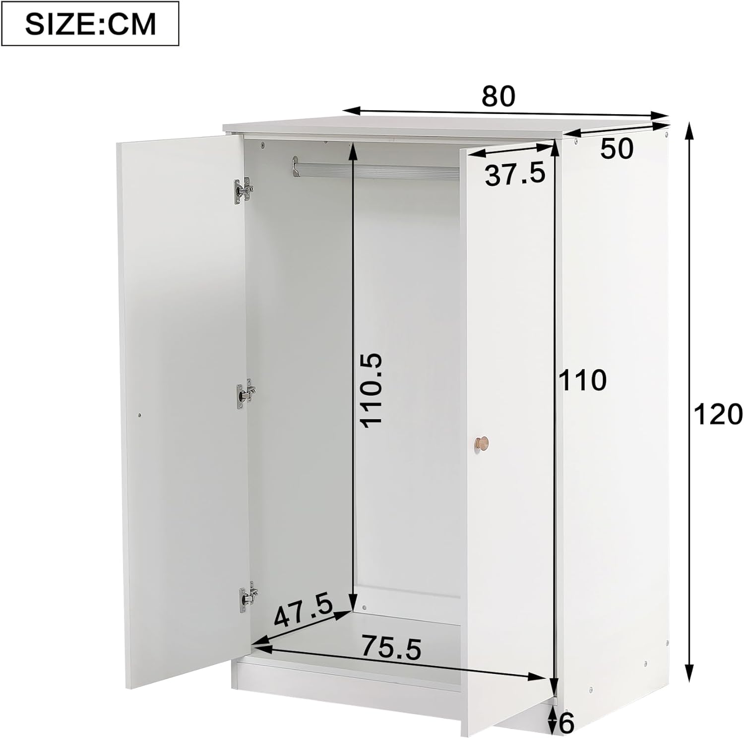 Small Wardrobe with Rail 2 Door Wardrobe Bedroom Living Room Kids Wardrobe MDF White