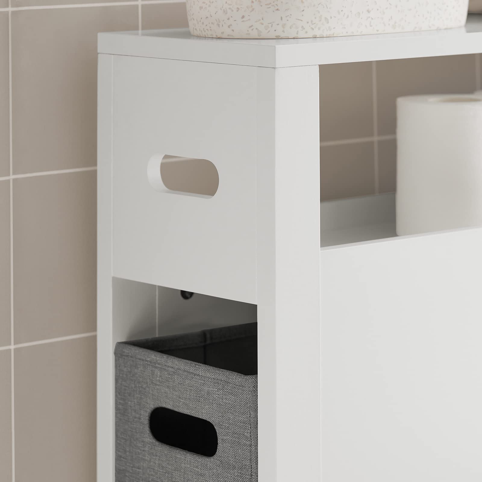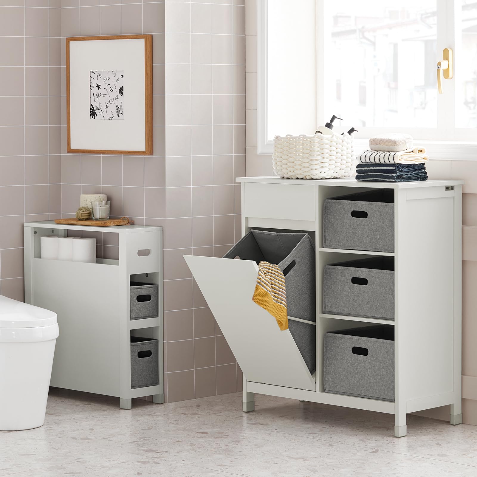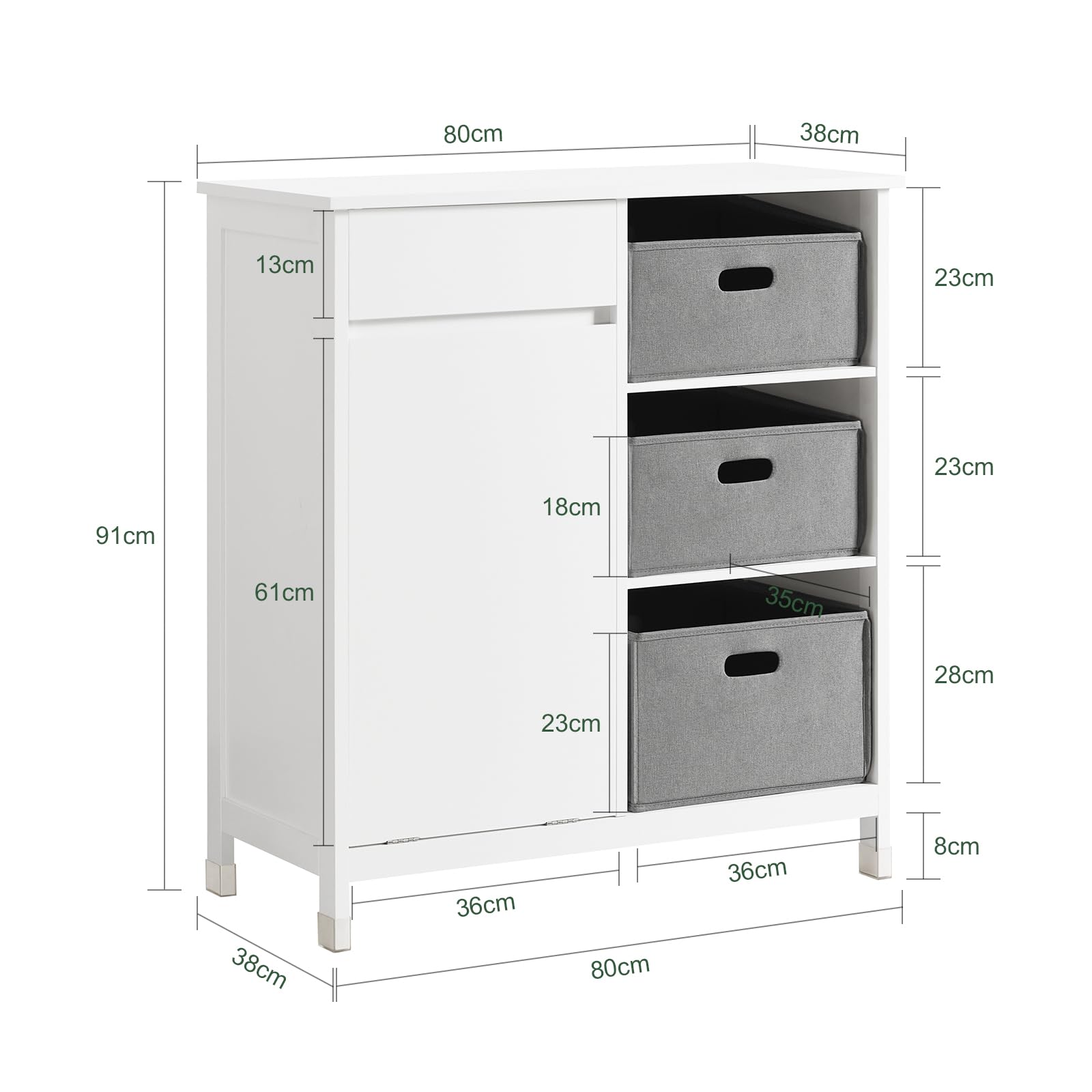 - [Hidden closet design laundry basket]: Stylish and functional laundry cabinet with integrated laundry bag for discreet storage - perfect as a bathroom cabinet, bathroom cabinet or narrow bathroom base cabinet for modern bathrooms. Dimensions: approx. 80 x 91 x 38 cm. Weight: approx. 24 kg. Load capacity: up to 70 kg