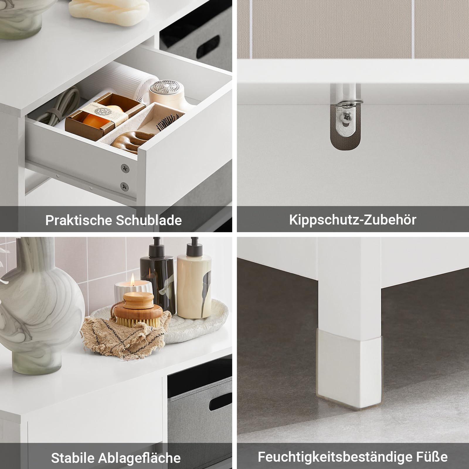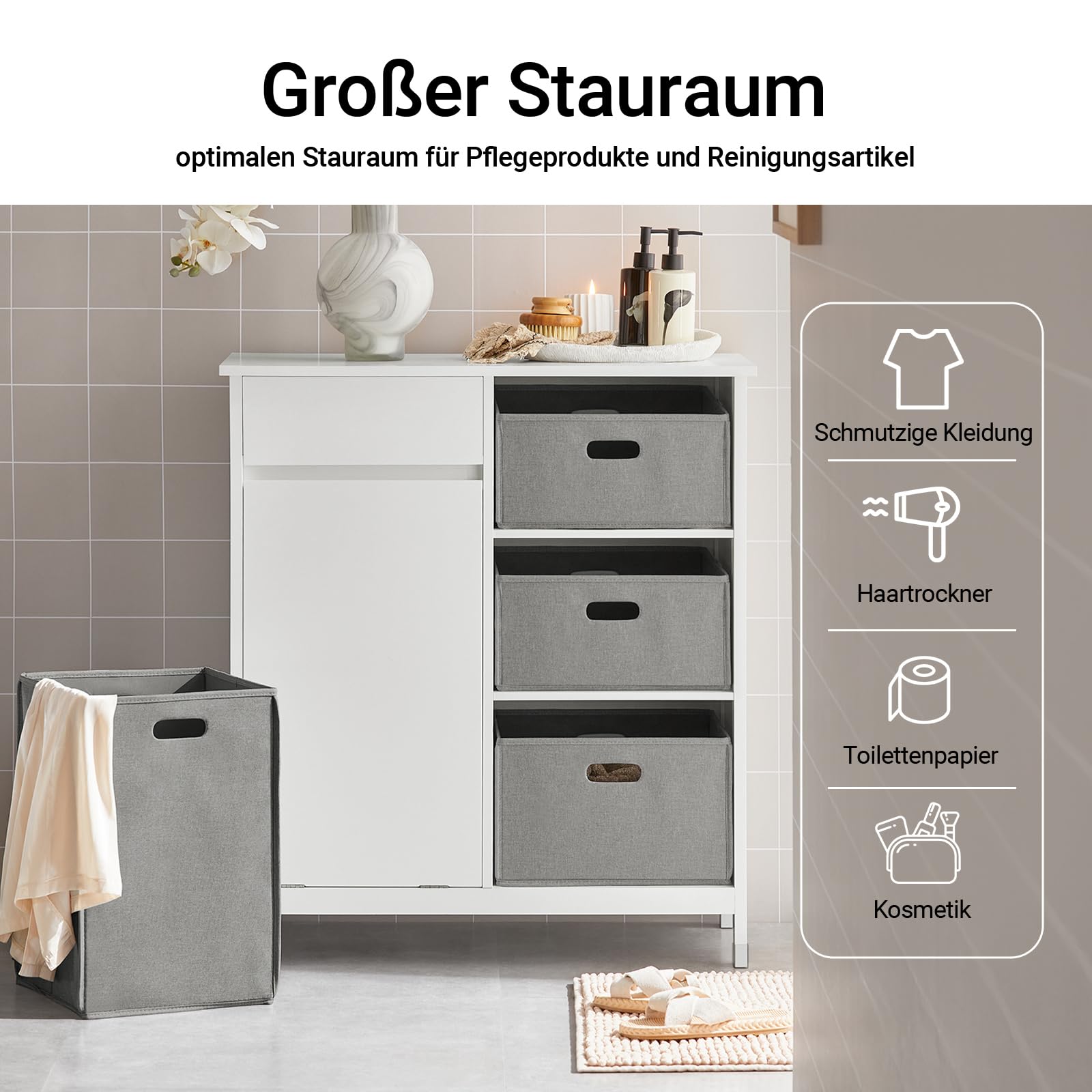 - Multifunctional storage space for more order: three spacious baskets and a drawer provide generous storage space for laundry, toiletries and bathroom accessories - ideal as bathroom furniture or tall bathroom cabinet for structured order