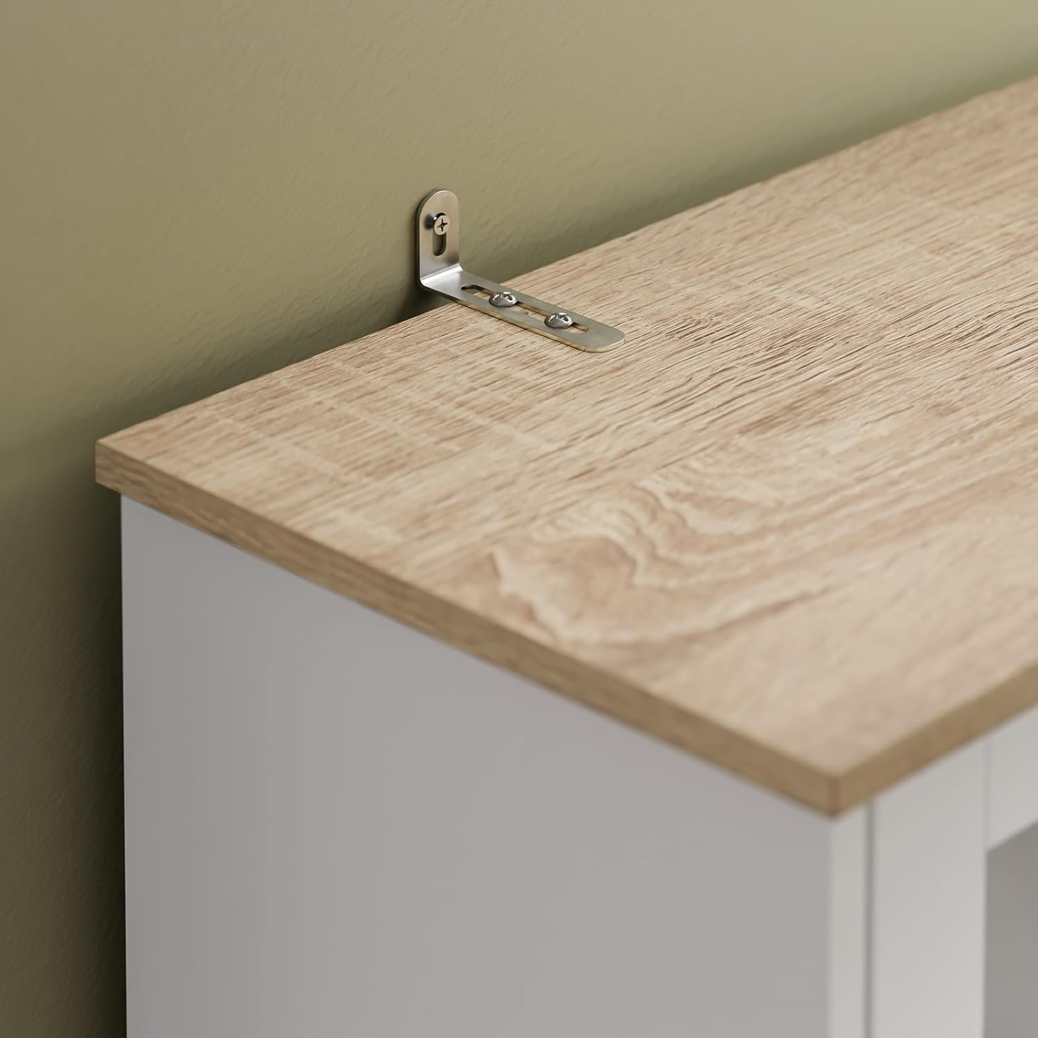 - Easy to assemble thanks to flat pack delivery: comes in two packages with instructions and accessories. The combination of white surface and wood look fits perfectly with any decor - whether modern, classic or vintage. Ideal for DIY fans and as a stylish addition to your furniture