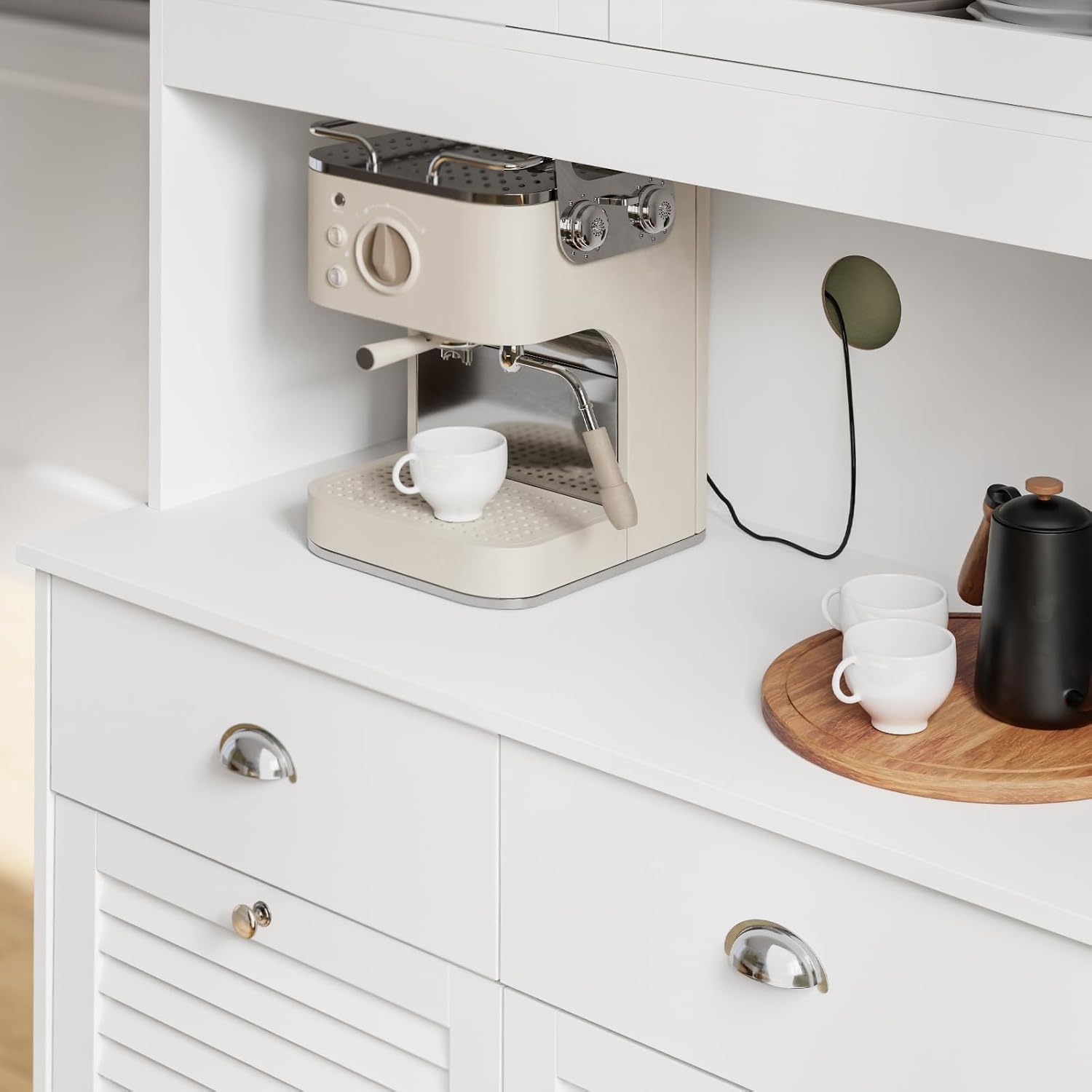 - Open electric device compartment with cable outlet: the middle open compartment is suitable for microwaves, coffee machines or a compact kitchen corner. The cable opening on the back ensures a tidy and safe power supply