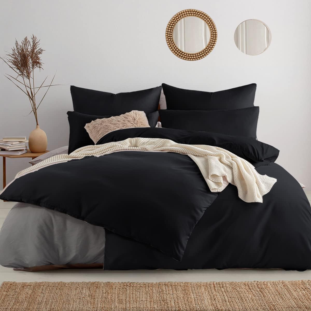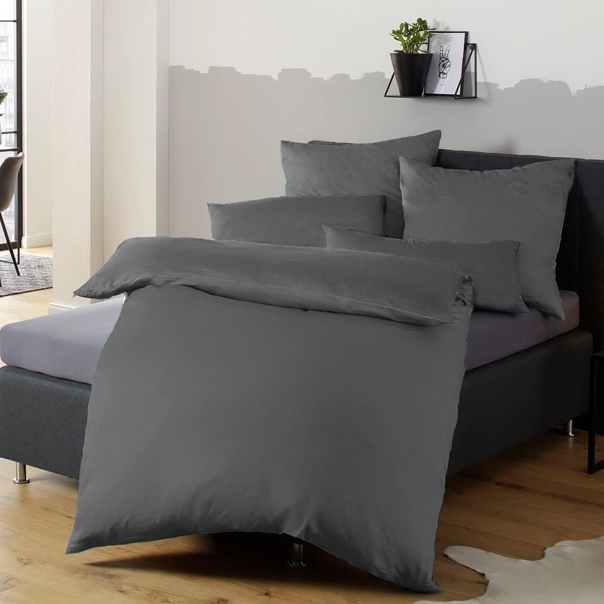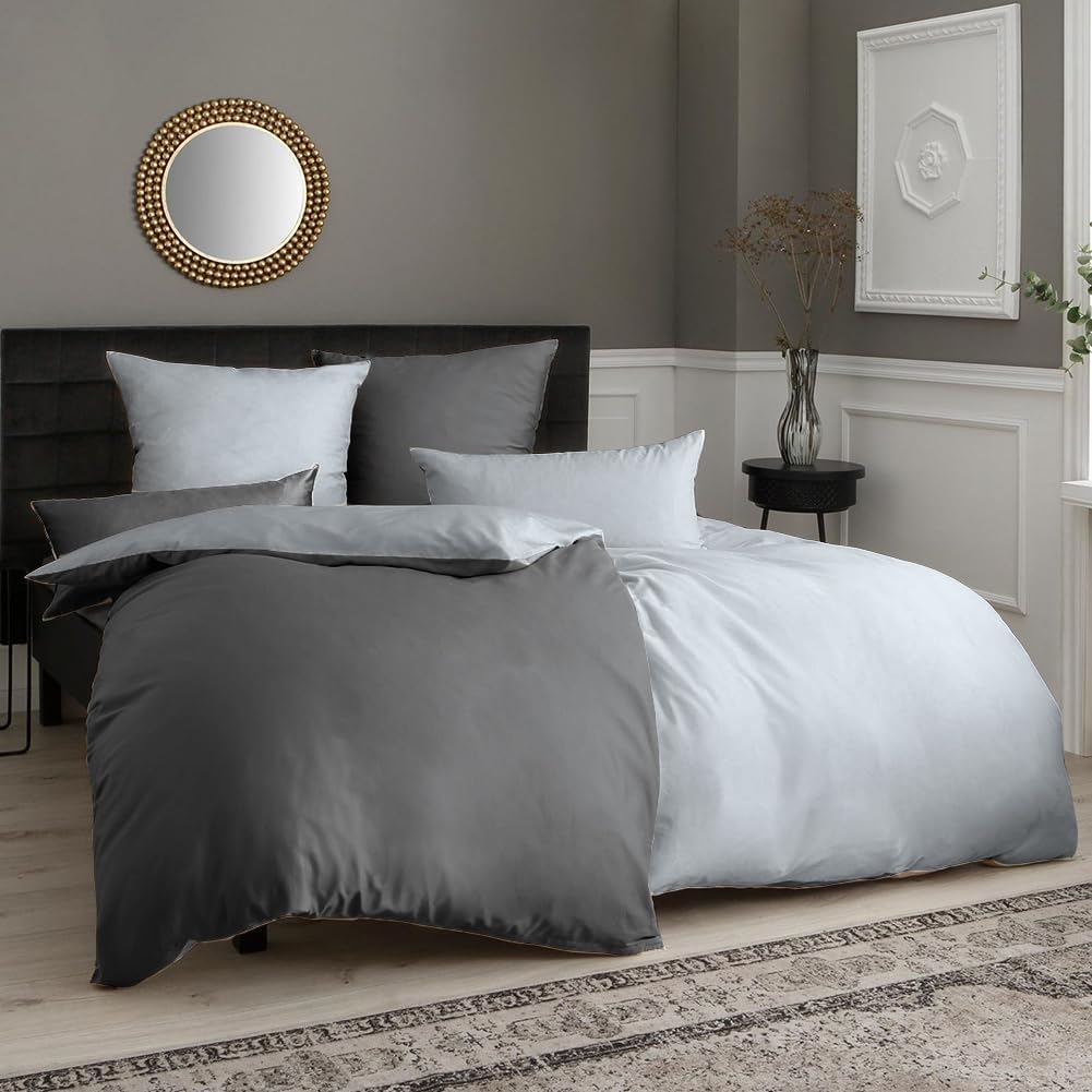 Soifox Bed Linen Set, Grey Anthracite, Microfibre, Non-Iron and Wrinkle-Free Duvet Cover 200 x 200 cm with Set of 2 Pillowcases 80 x 80 cm, Bed Linen with Zip