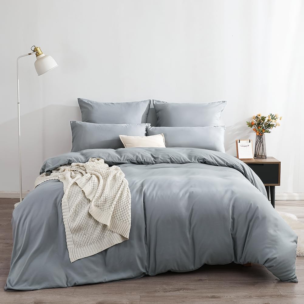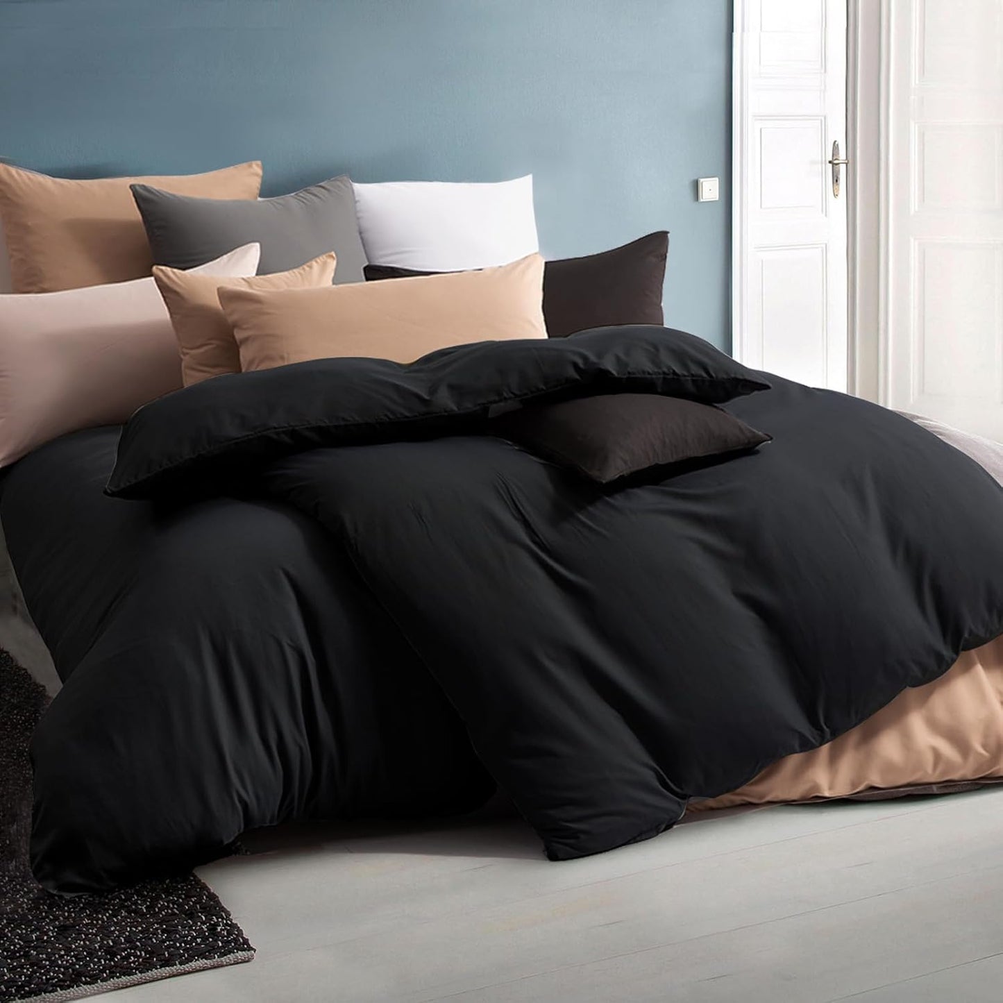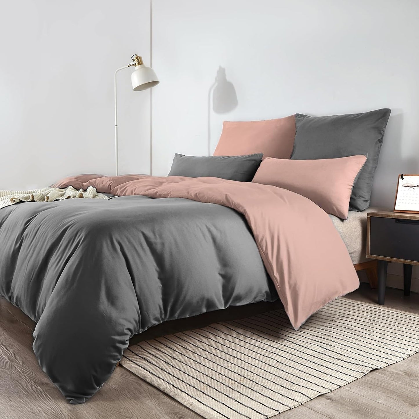 Soifox Bed Linen Set, Grey Anthracite, Microfibre, Non-Iron and Wrinkle-Free Duvet Cover 200 x 200 cm with Set of 2 Pillowcases 80 x 80 cm, Bed Linen with Zip
